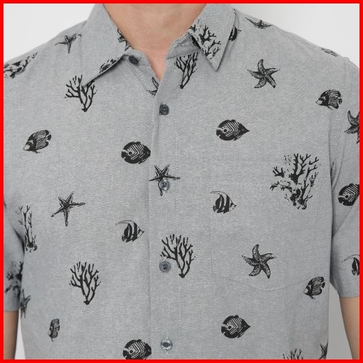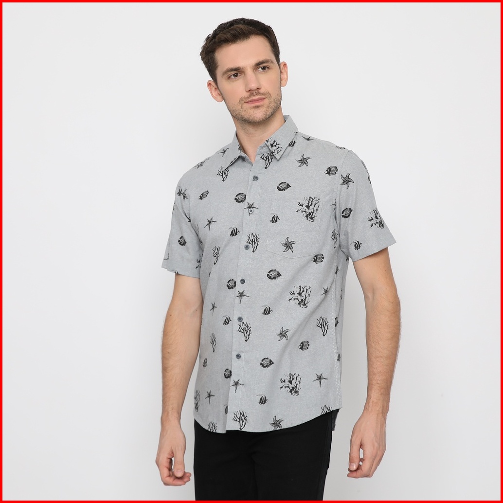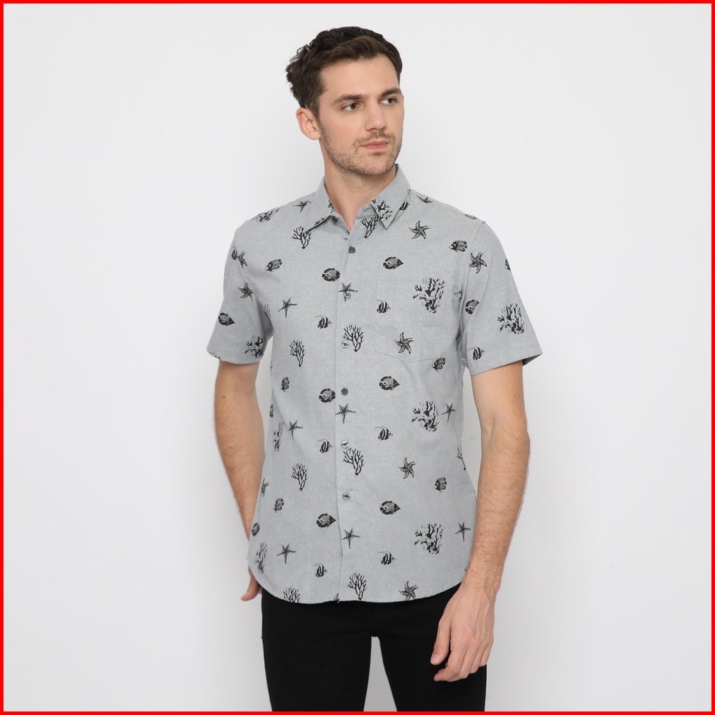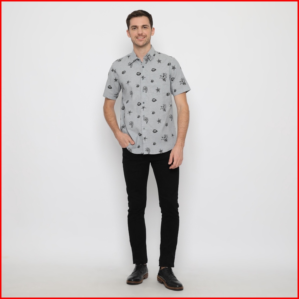 Platini Kemeja Motif Pria Lengan Pendek Katun Abu 73328