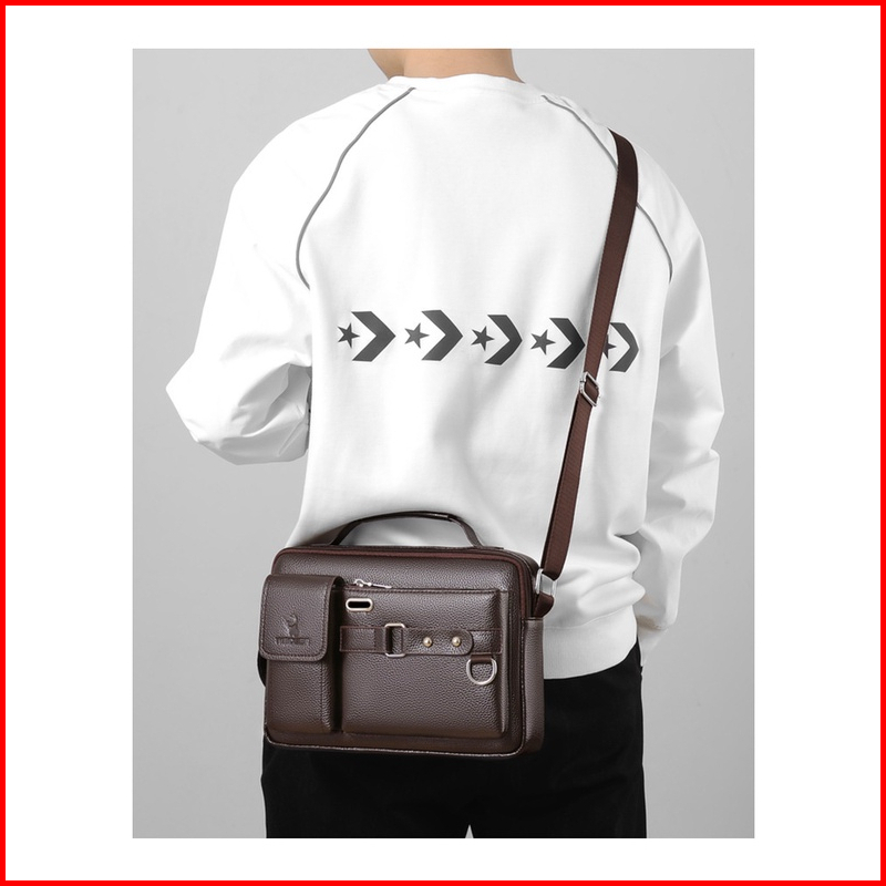 Tas Selempang Bahu Kulit Distro Pria Messenger Bag Leather Import Slempang Cowok Premium Wx081