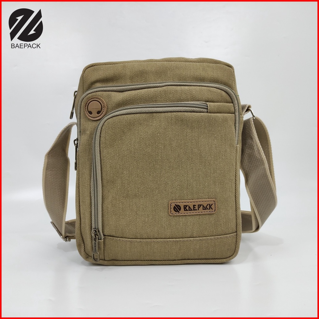 Tas Selempang Kanvas Cowok Dengan Lubang Headset Argo Cream Original Baepack Tas Kanvas Bahu Pria Tas Canvas Terbaik Pro