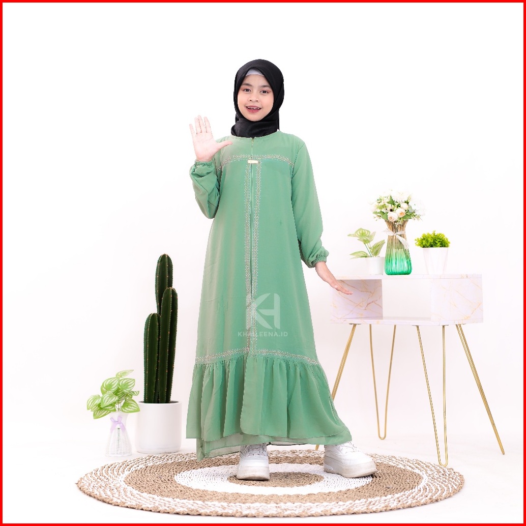 Gamis Anak Perempuan Khaileena Dress Ceruty Swarovsky Usia 6-14 Tahun Bahan Ceruty Babydoll Armani