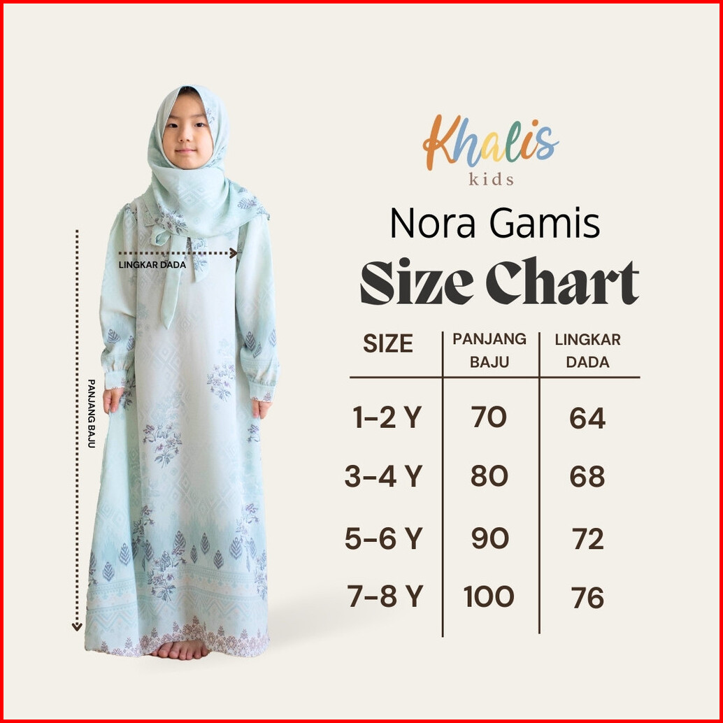 Khalis Kids Nora Dress Gamis Baju Dress Gamis Anak Perempuan 1-8 Tahun