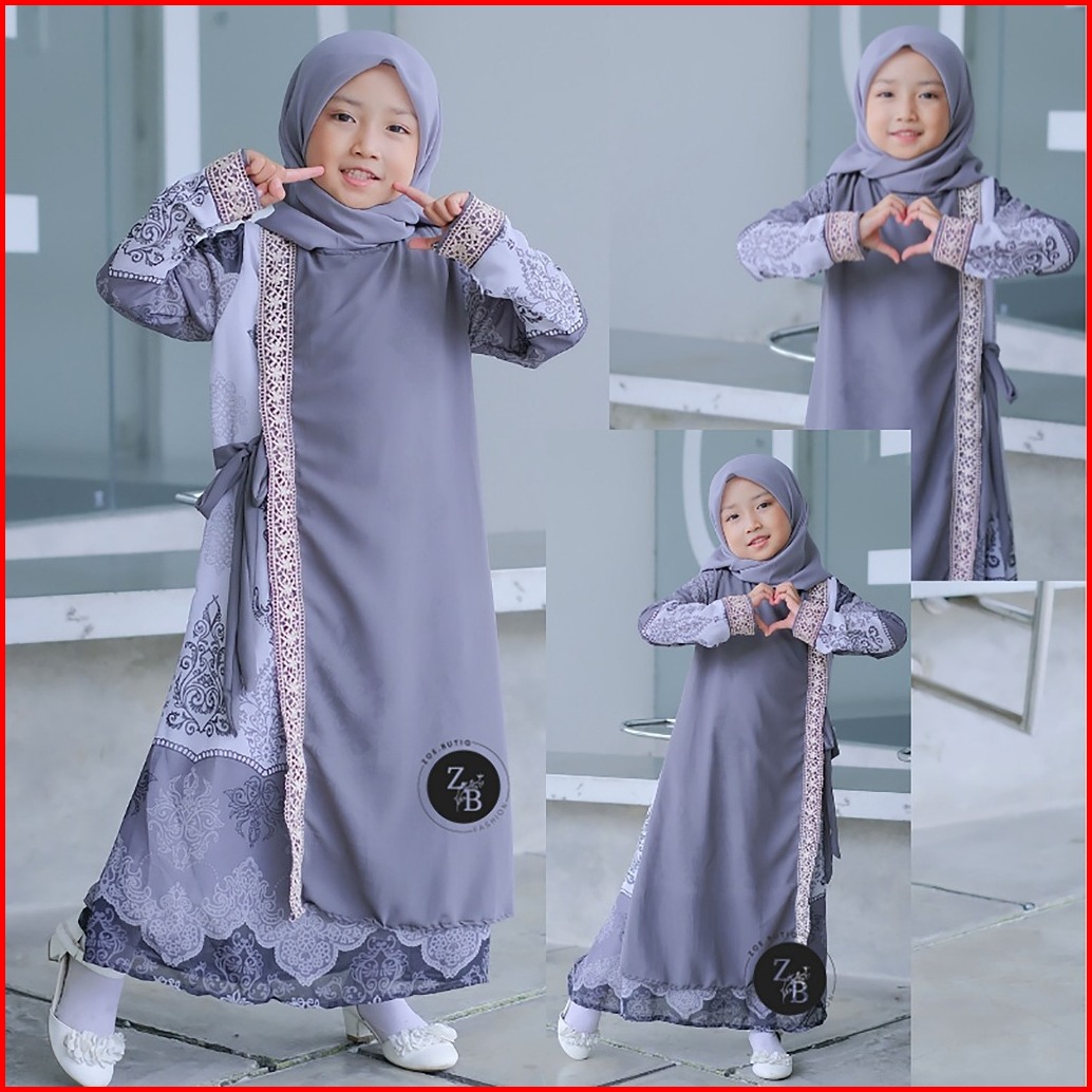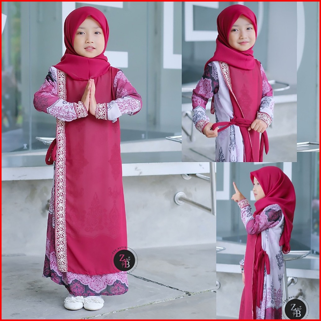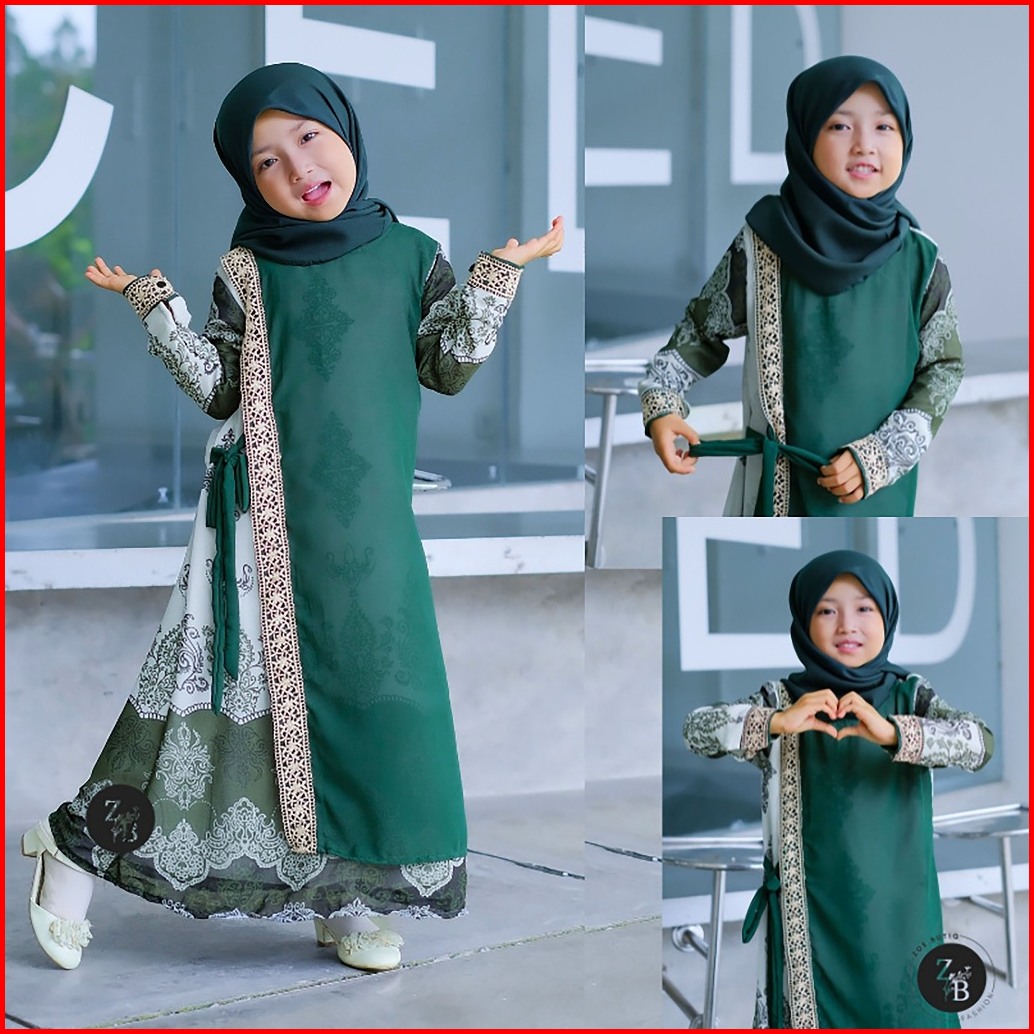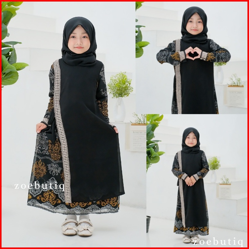 Gamis Anak Perempuan Lebaran Model Terbaru Kekinian Mewah Motif Etnik Zoe77 Fairah