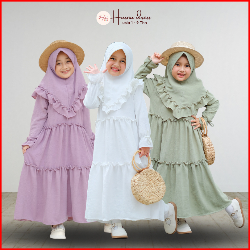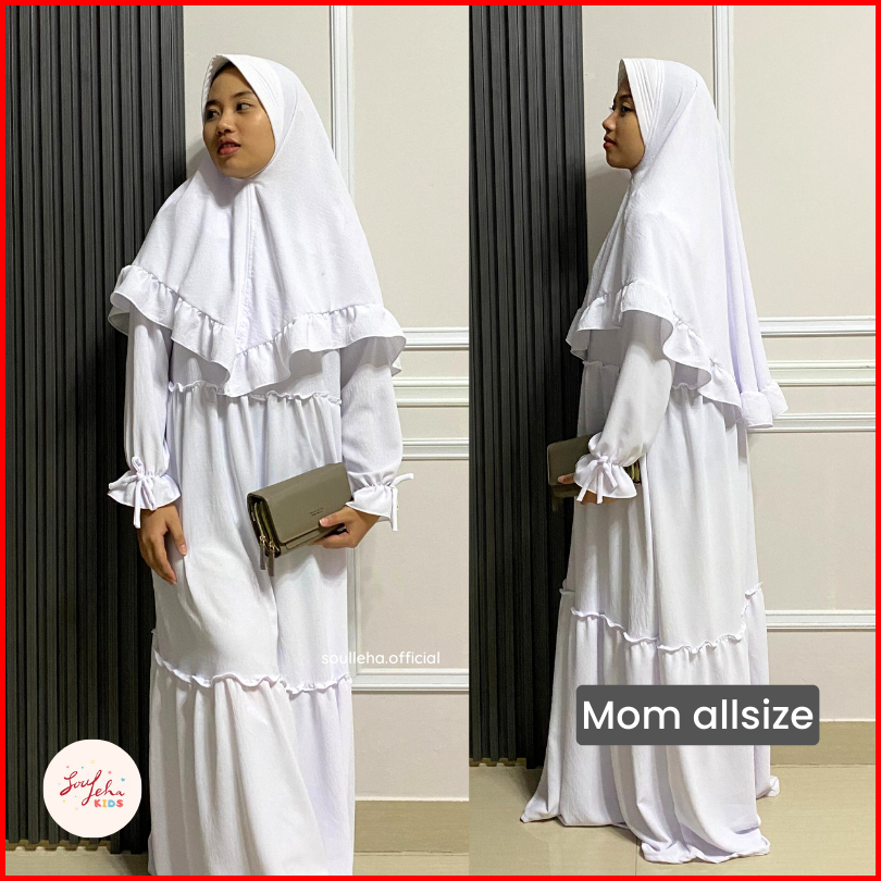 Soulleha Set Gamis Putih Manasik Haji Anak Tk Sd Smp Hasna Crinkle Airflow Premium 1-11 Tahun