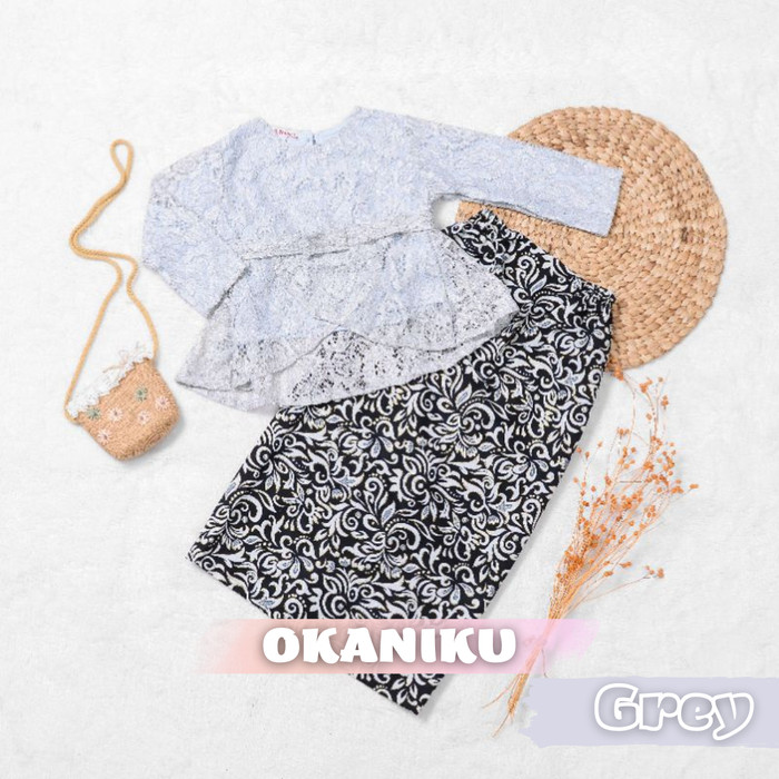 SETELAN KEBAYA ANAK PEREMPUAN BRUKAT ROK KIMONO BAJU TRADISIONAL - GREY, S