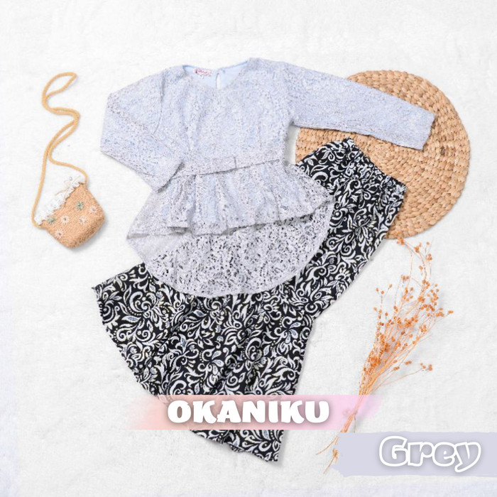 SETELAN KEBAYA ANAK PEREMPUAN KUTUBARU BAJU TRADISIONAL MURAH - GREY, S