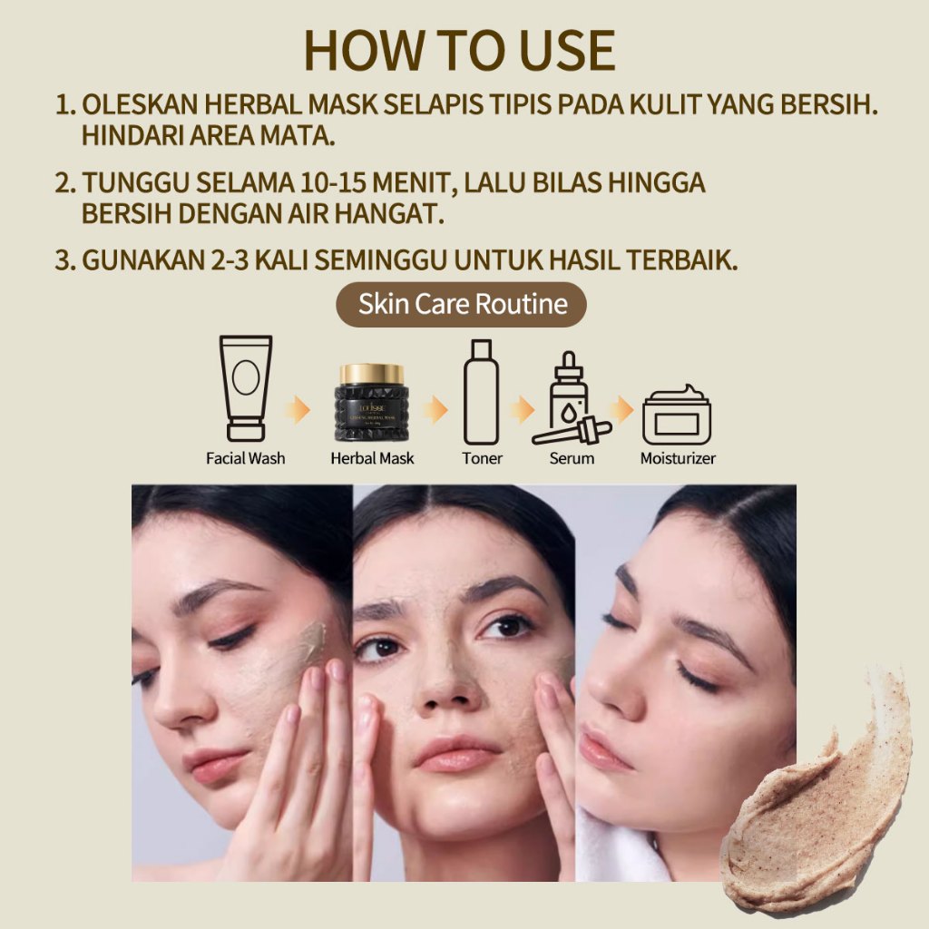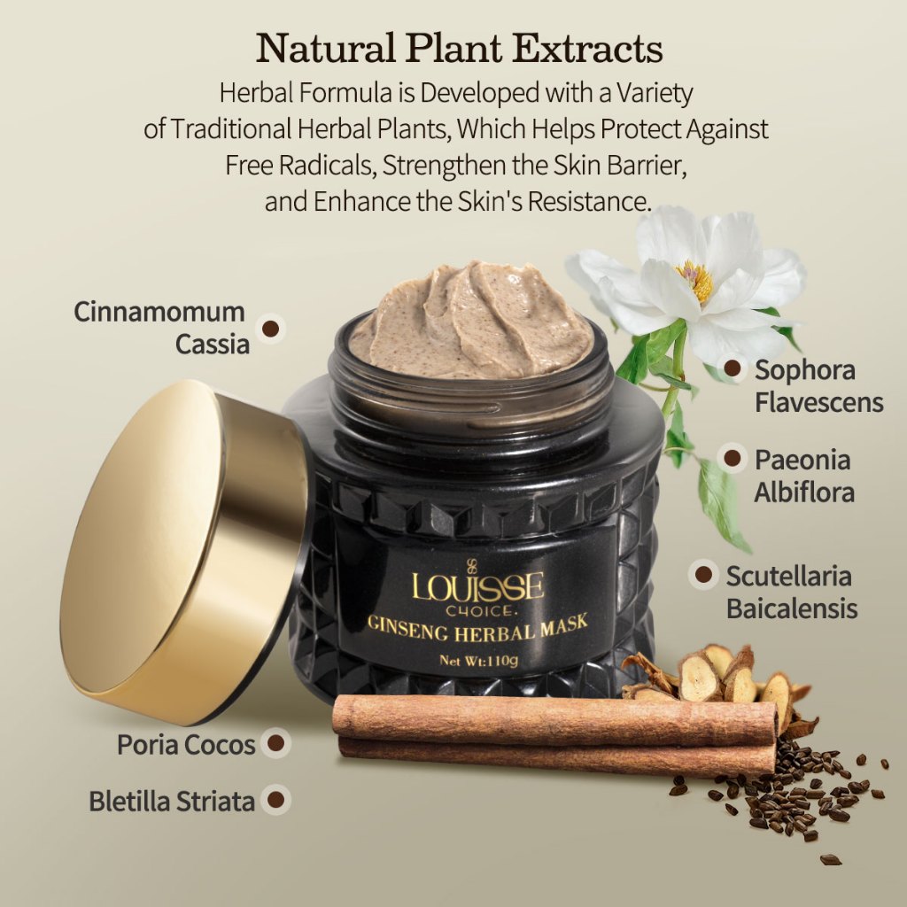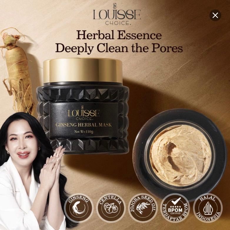 LOUISSE CHOICE GINSENG HERBAL MASK 110G DEEPLY CLEAN THE PORES MOISTURIZING JOJOBA SEED OIL BPOM