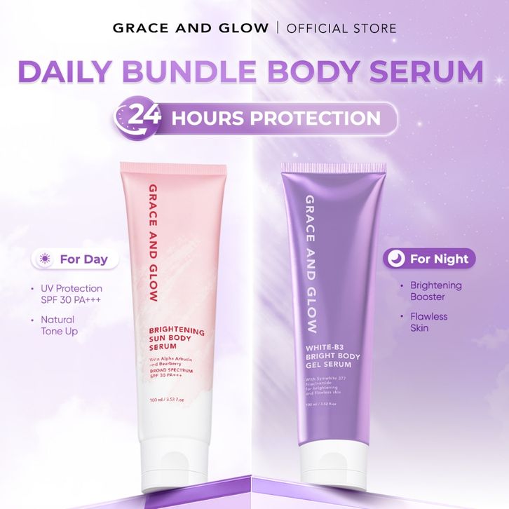 GRACE AND GLOW DAILY BUNDLE BODY SERUM DAY AND NIGHT WHITE-B3 BRIGHT BODY GEL SERUM UNTUK MALAM + BRIGHTENING SUN BODY L