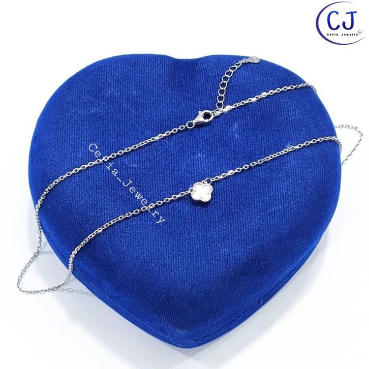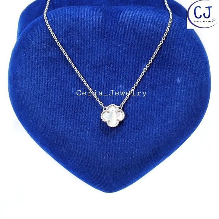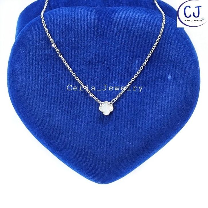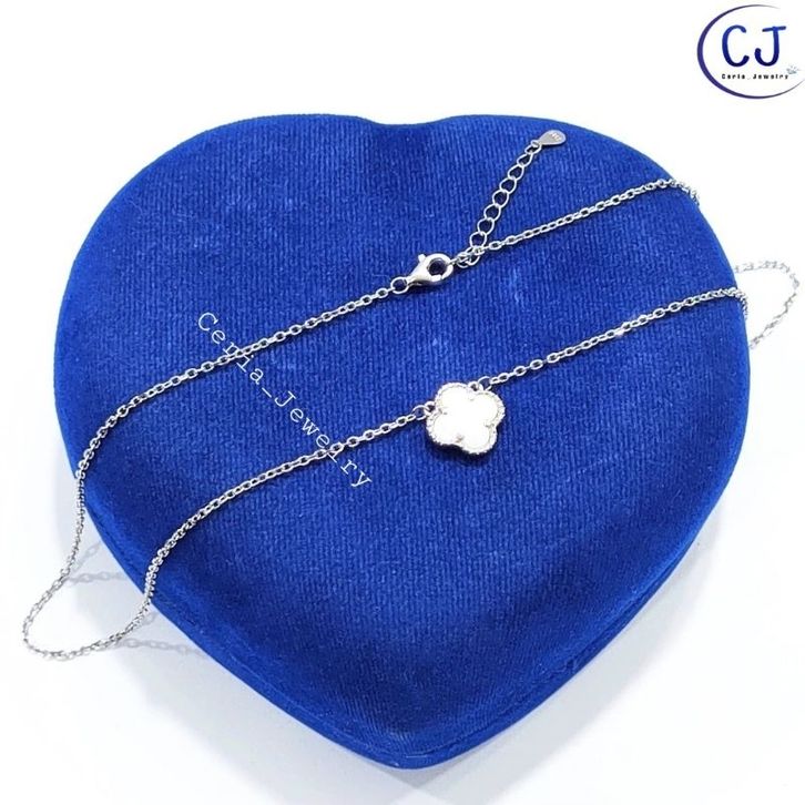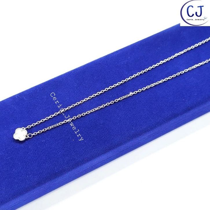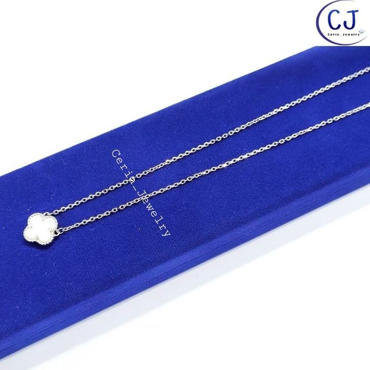 Kalungg Perak Wanita Asli 925 Lapis Ems Putih Model Rantai Nori Polos Variasi Van Cleef Putih - Perhiasan Perak Asli