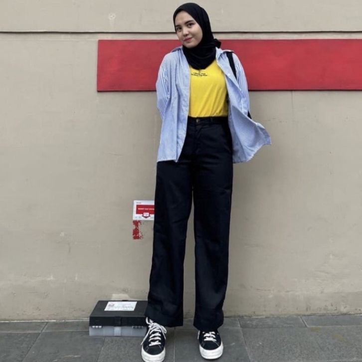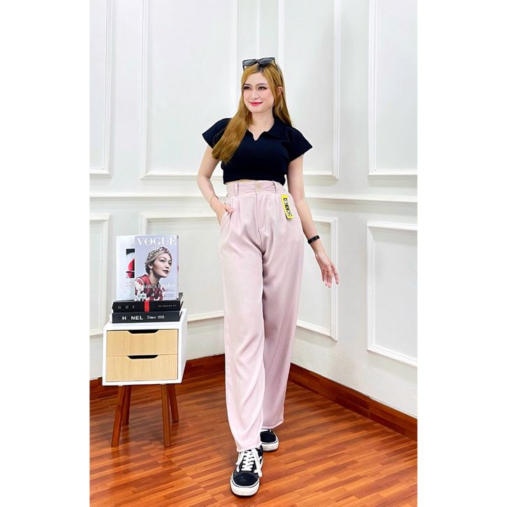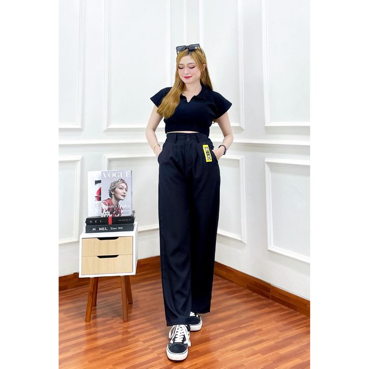 Celana kulot katun loose pants trousers - Celana kulot cotton wanita panjang 100cm - Celana wanita higwaist