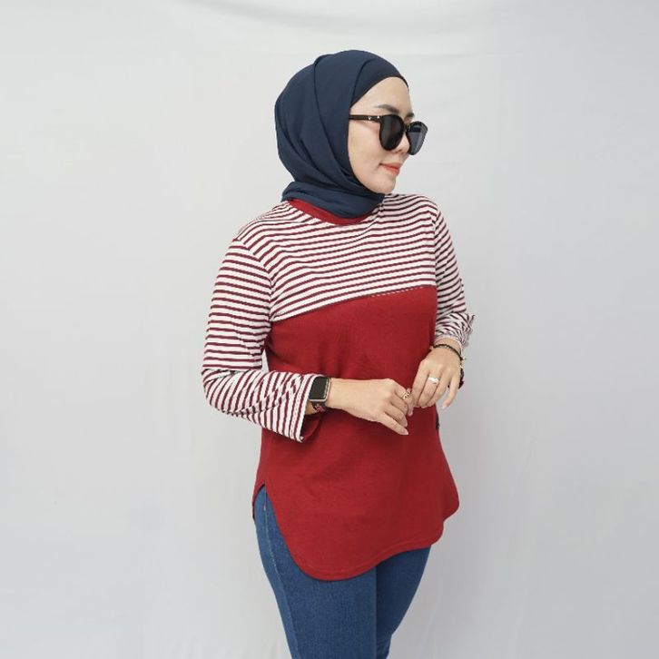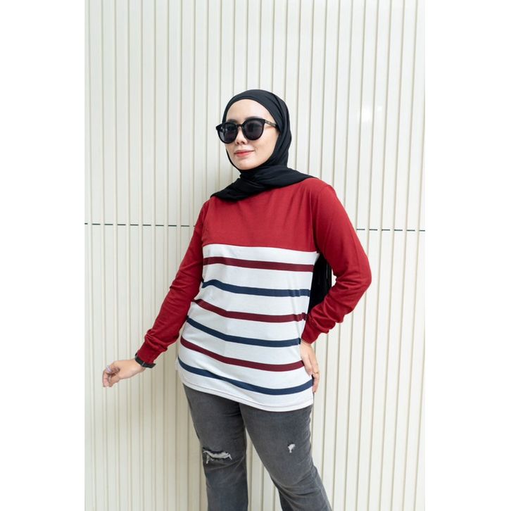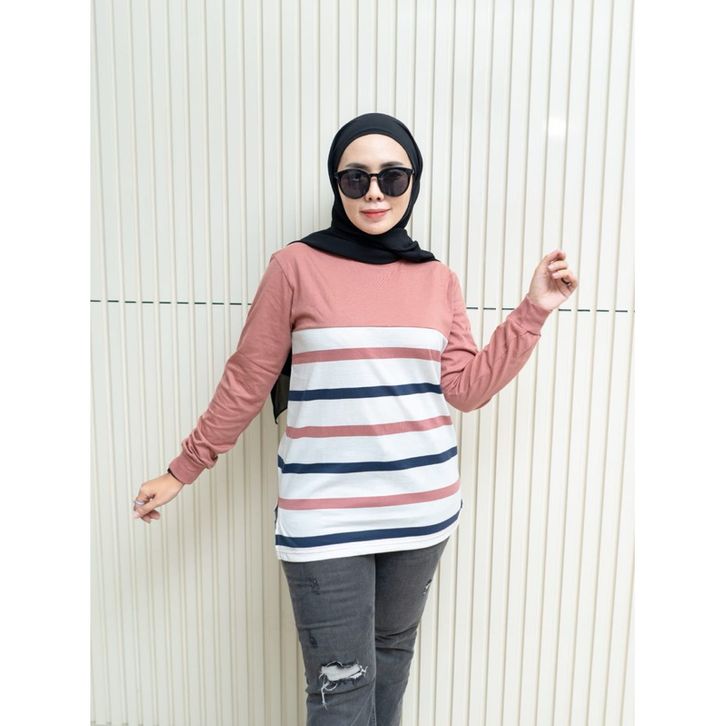 Baju Kaos Wanita Oval Kombinasi Salur Atasan Wanita Oversize Terbaru Kekinian Original Fst Kaos Wanita Lengan Panjang