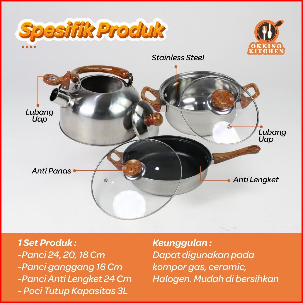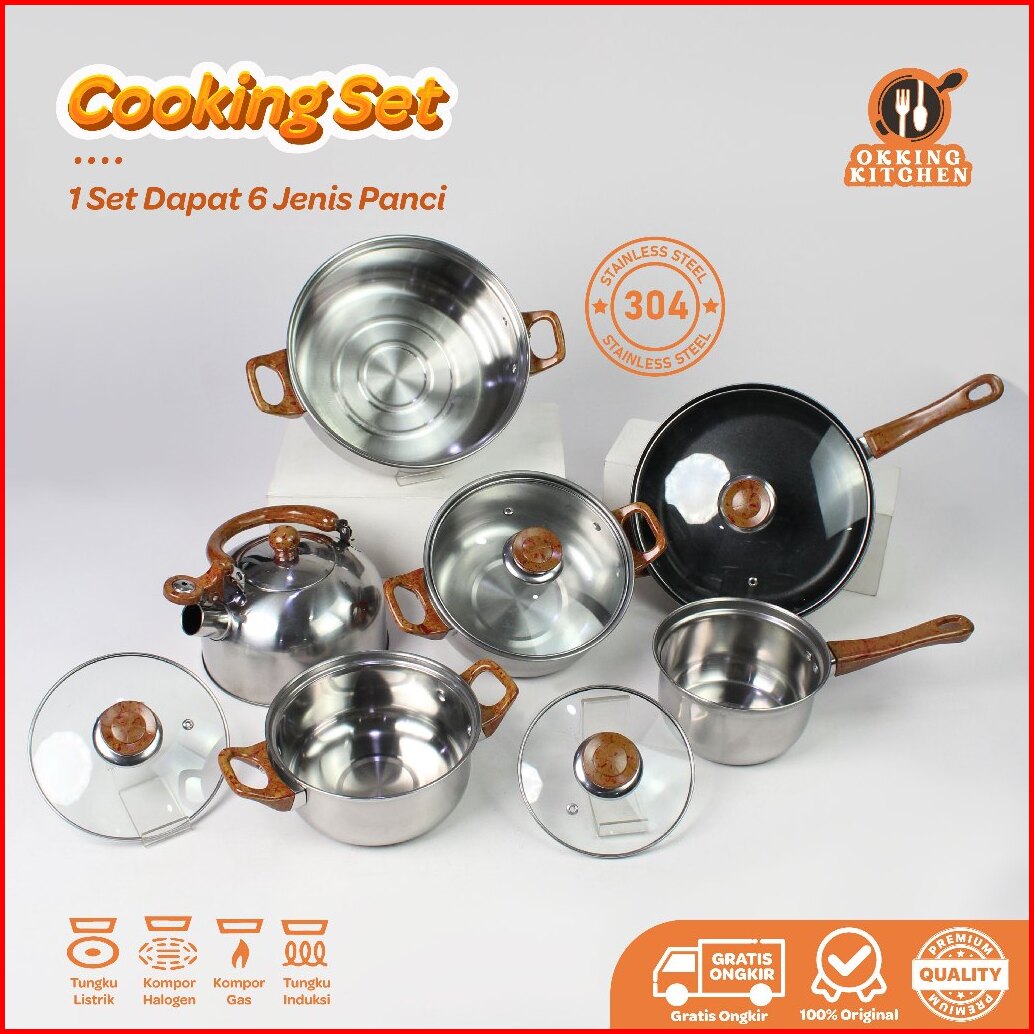 Panci Set Masak Stainless Steel Isi 6 Set Anti Karat Bahan Tebal Panci Teko 6 Pcs Stainless 270