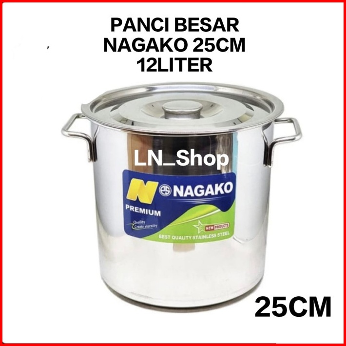 Panci Stock Pot Nagako Besar Stainless Steel Tutup 25cm 12 Liter