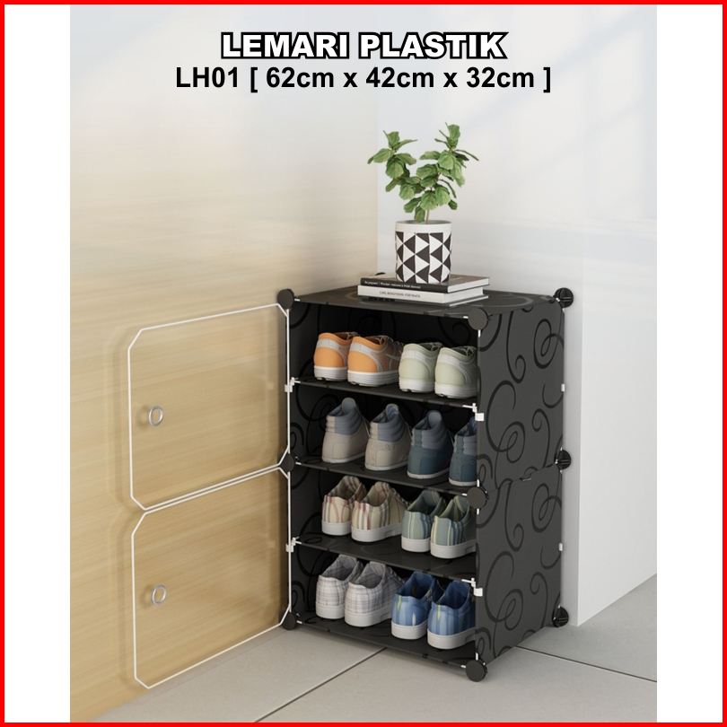 Rak Sepatu Portable 2 Kolom 4 Kotak Sendal Tebal Tertutup Anti Debu Lemari Sepatu Minimalis 4 Susun