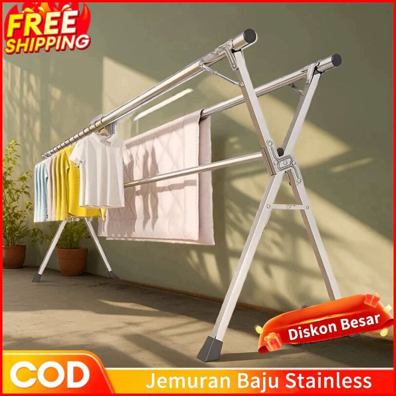 Termurah Jemuran Baju Stainless Steel Jemuran Jemuran Pakaian 160cm-240cm Jemuran Gantungan Jemuran Baju Lipat Tidak Dip