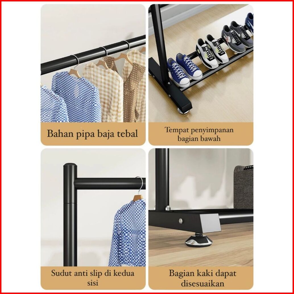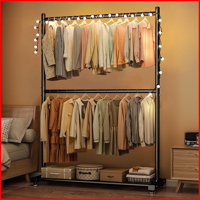 Rak Gantungan Baju Besi Stand Hanger Double Gawang Baju Jemuran Pakaian Portable Jemuran Baju Jemuran Hanger Rak Baju