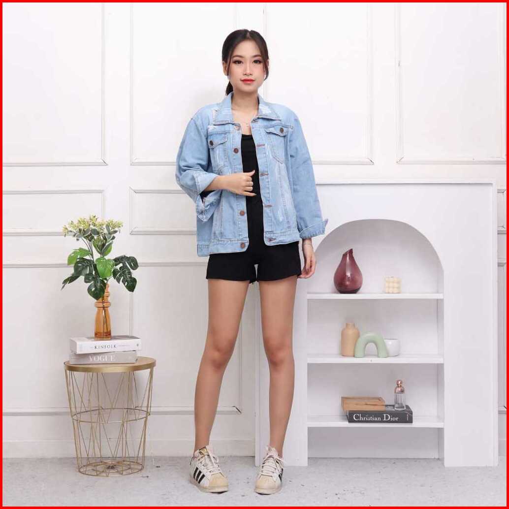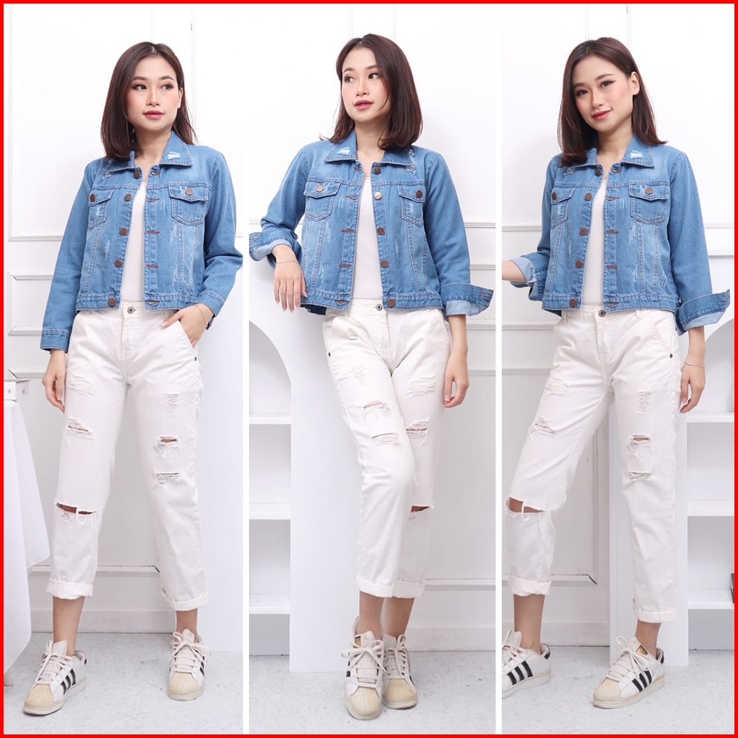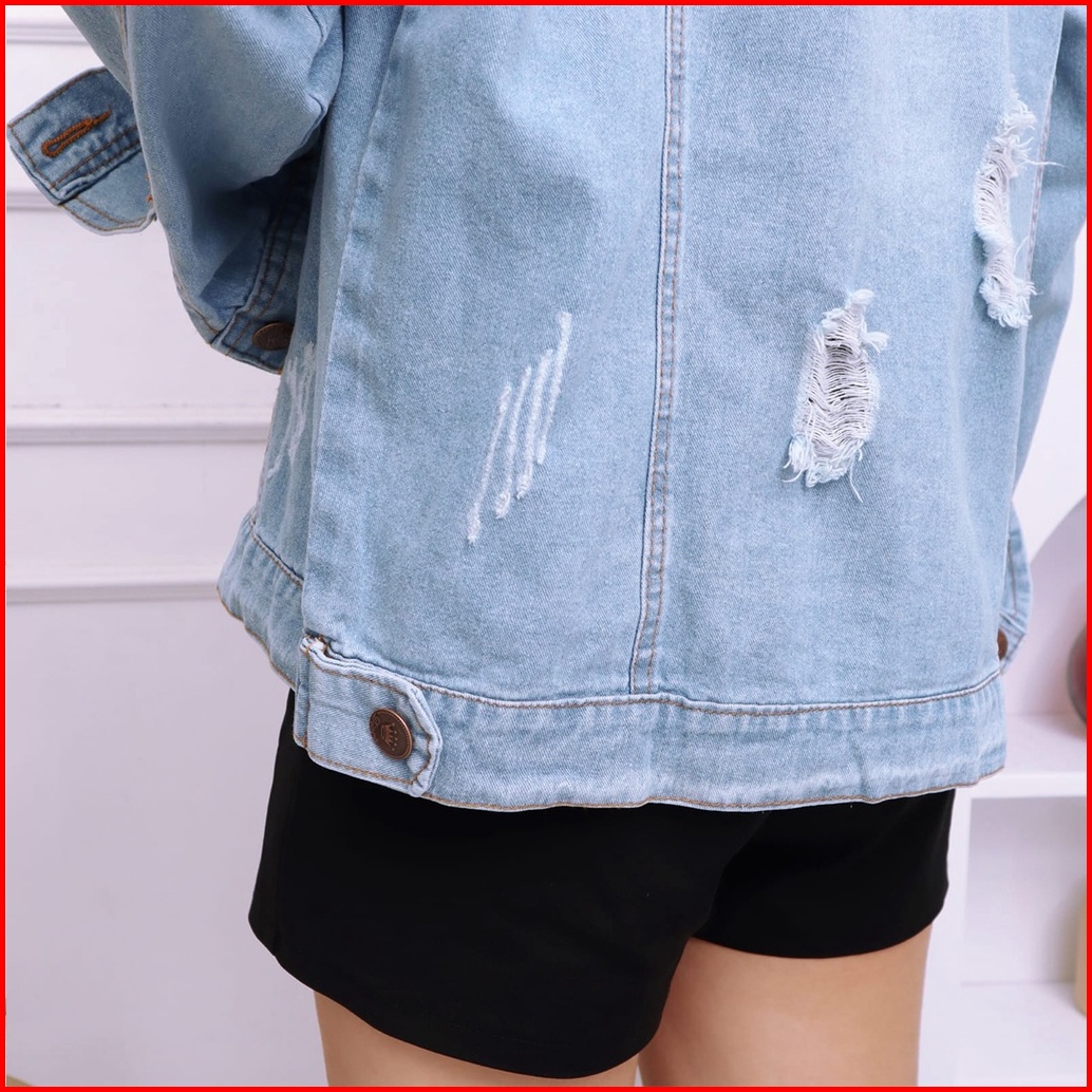 Vios - Jaket Jeans Oversize Wanita Sobek Kekinian Denim Jacket Fashion Korean Style Karina