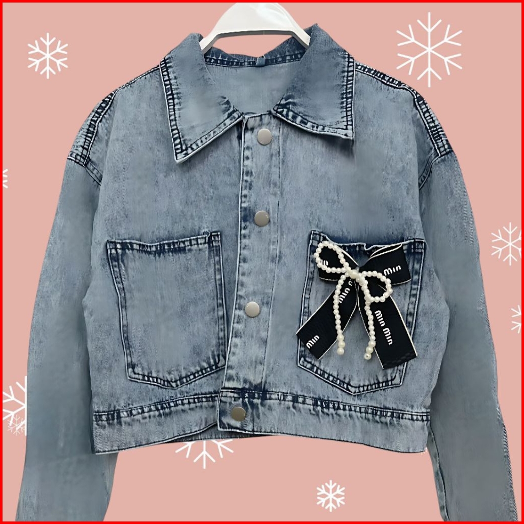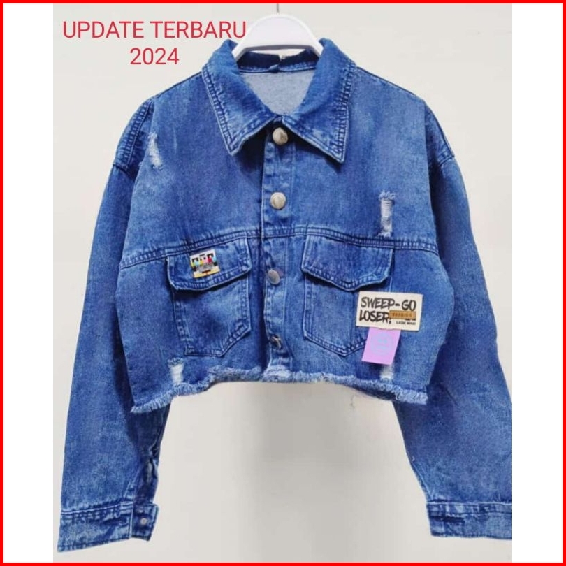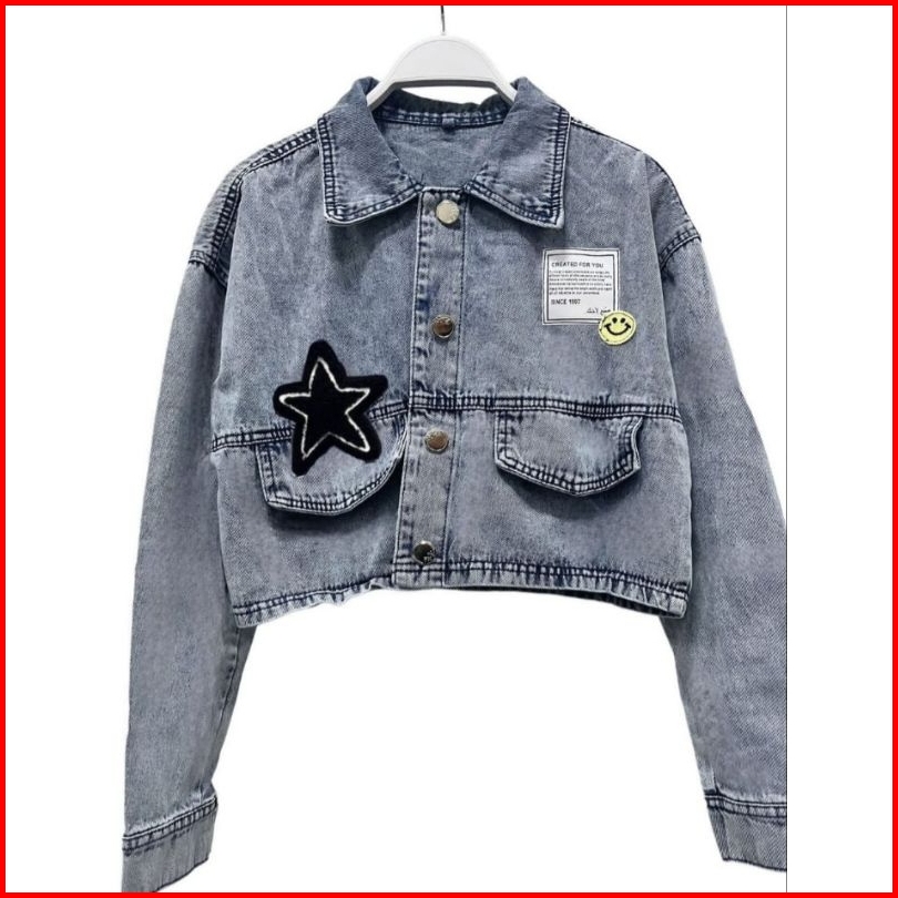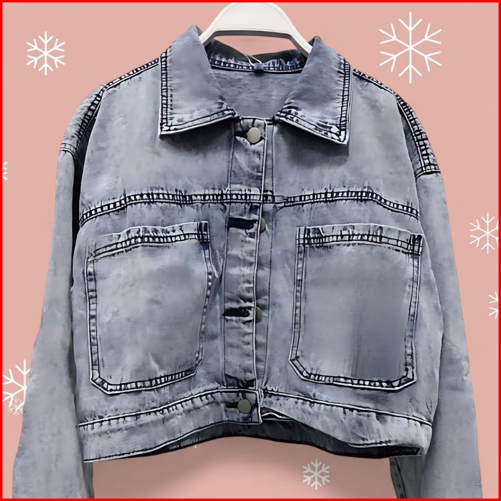 Px1 Jaket Jeans Crop Wanita Korean Style Bahan Premium Soft Jeans Lembut Dan Nyaman