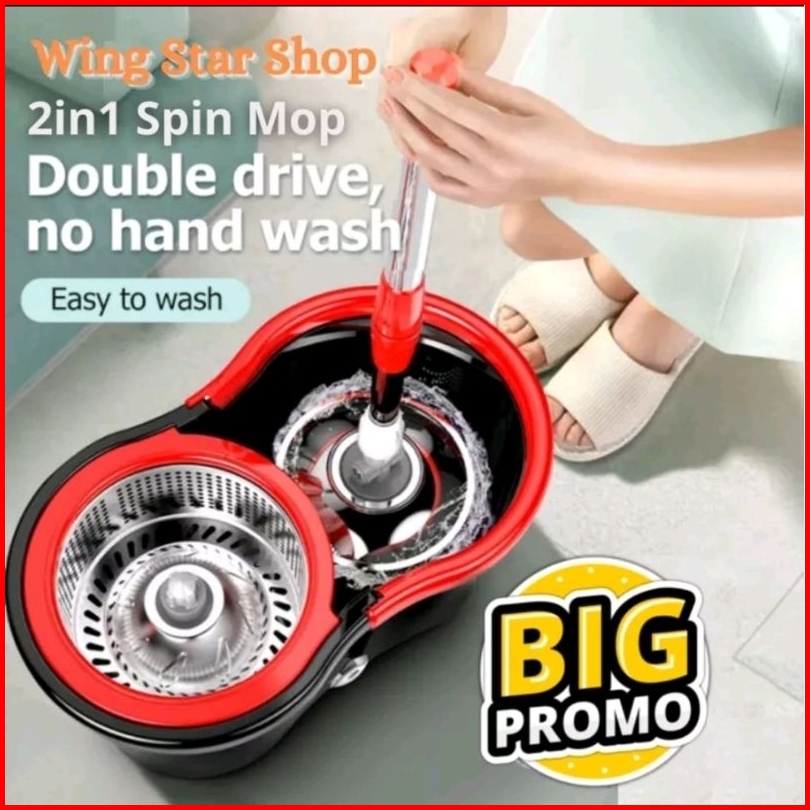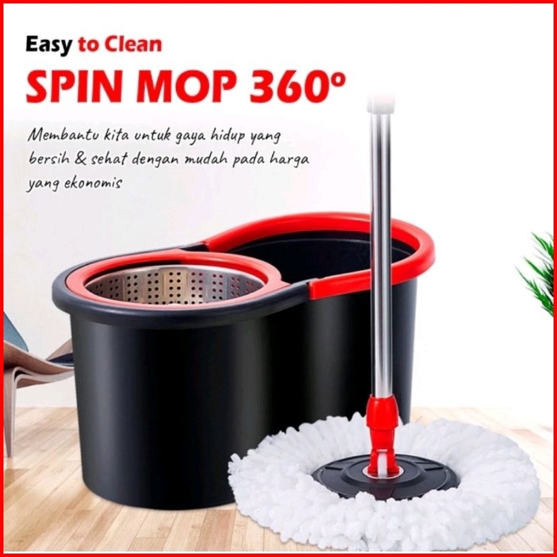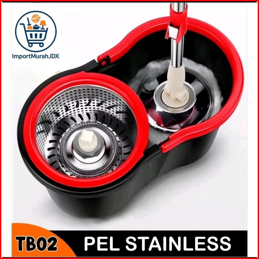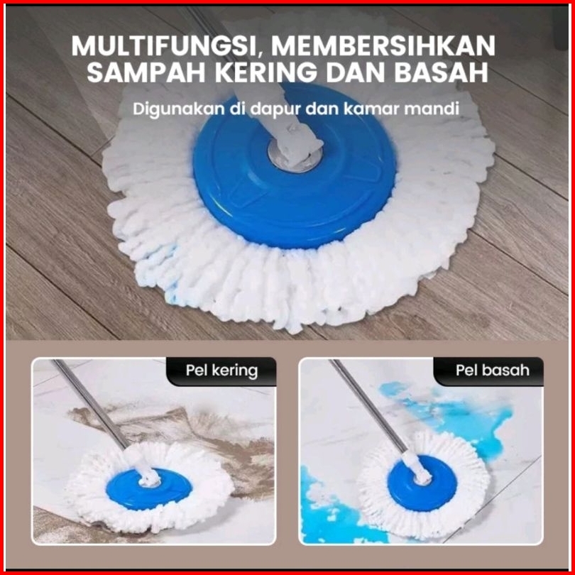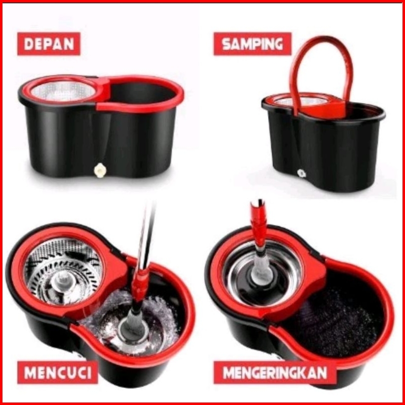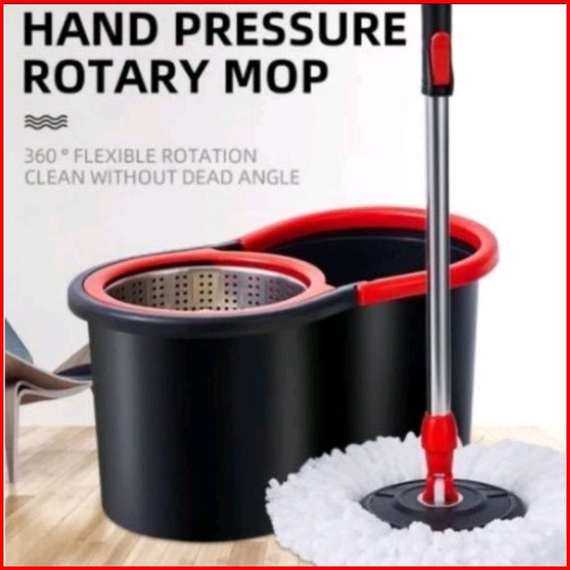 Set Alat Pel Lantai Stainless Super Mop Dengan Ember Pencuci Putar Hand Preassure Rotary Mop 360