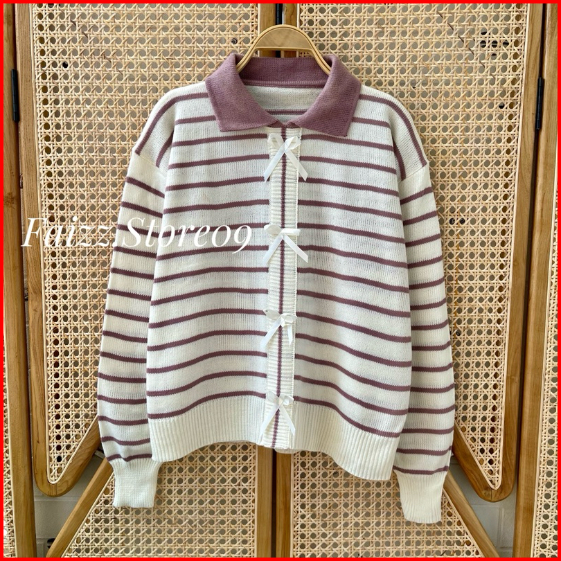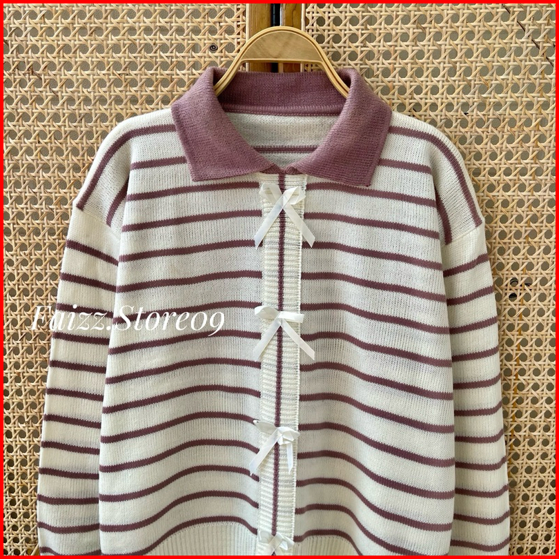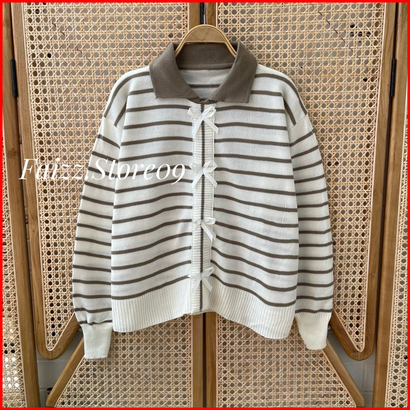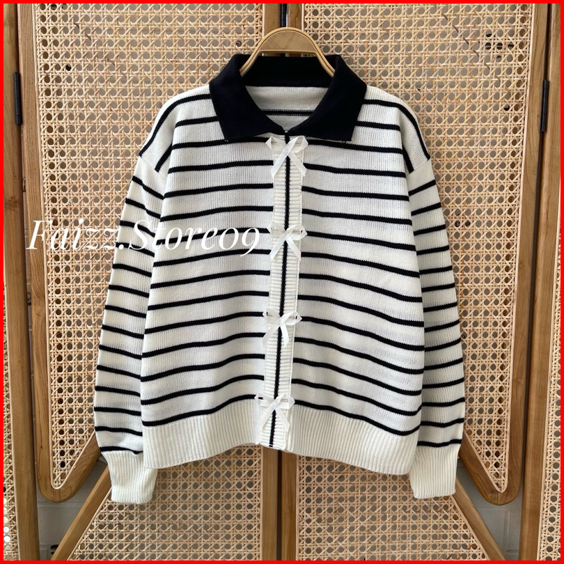 Abel Sweater Atasan Rajut Motif Pita Stripe Lengan Panjang Premium Wanita Kekinian