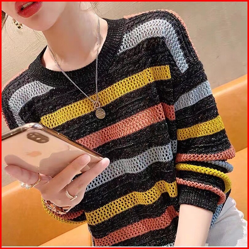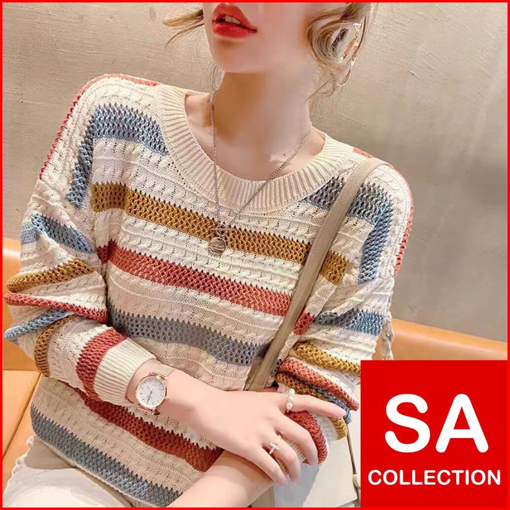 Sac - Kn203 Top Knit Import Sweater - Atasan Wanita Rajut Jaring Import Stripes