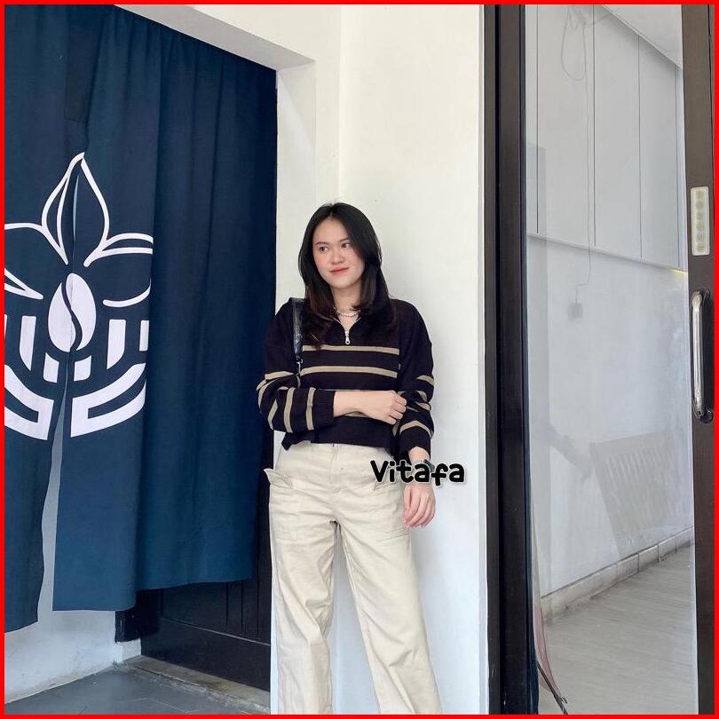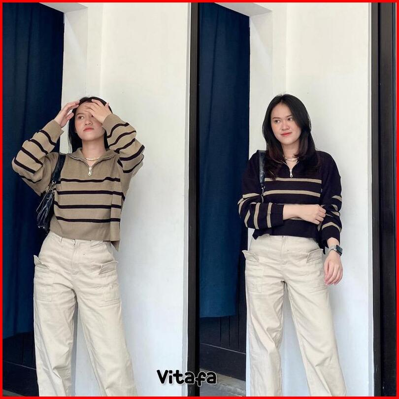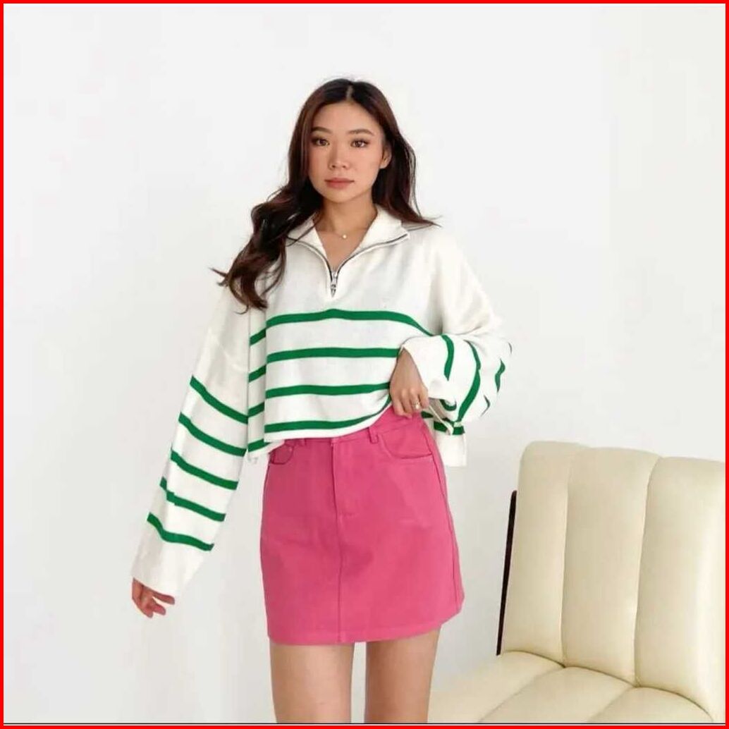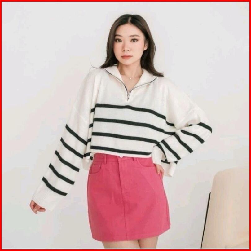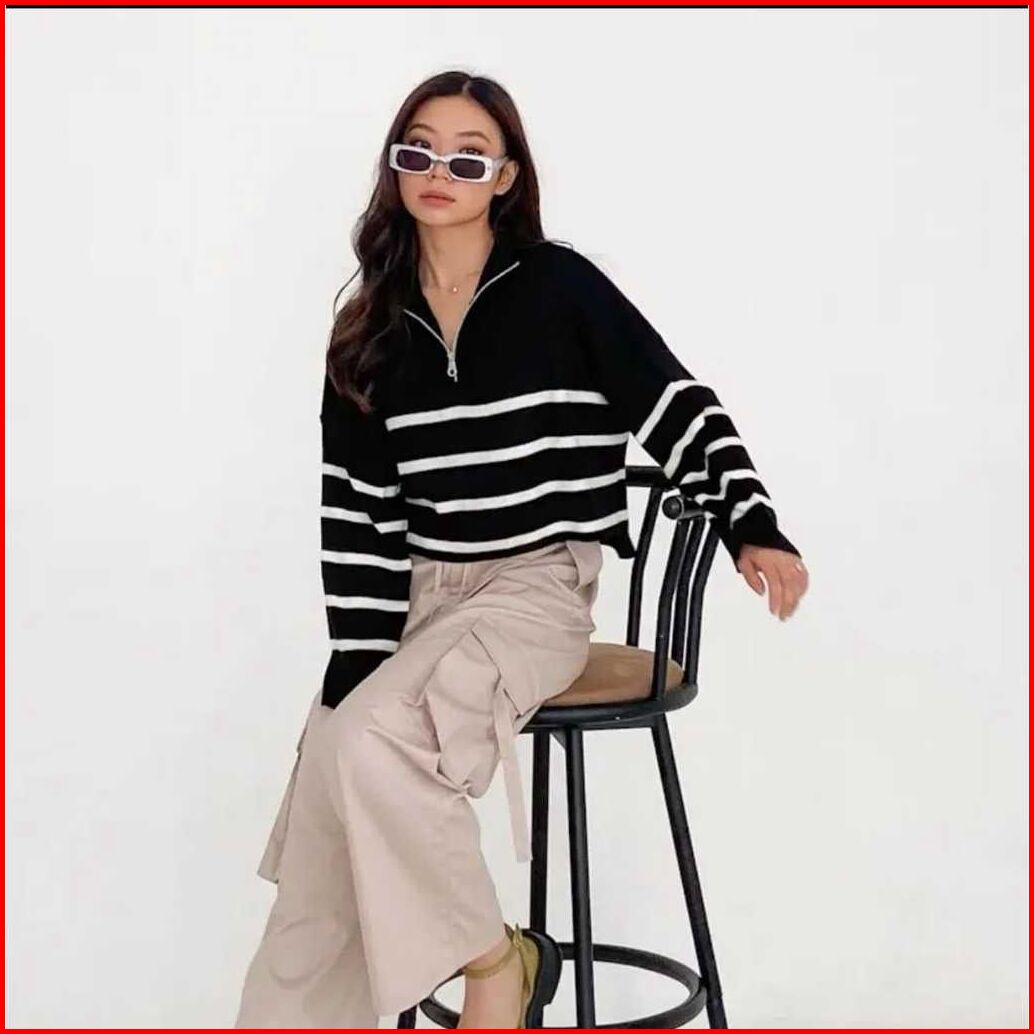 Zaneta Zipper Sweater Rajut Wanita Kekinian