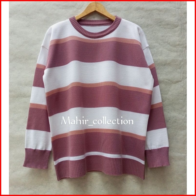 Malika Sweater Rajut Wanita Motif Blaster Oversize Model Korean Style