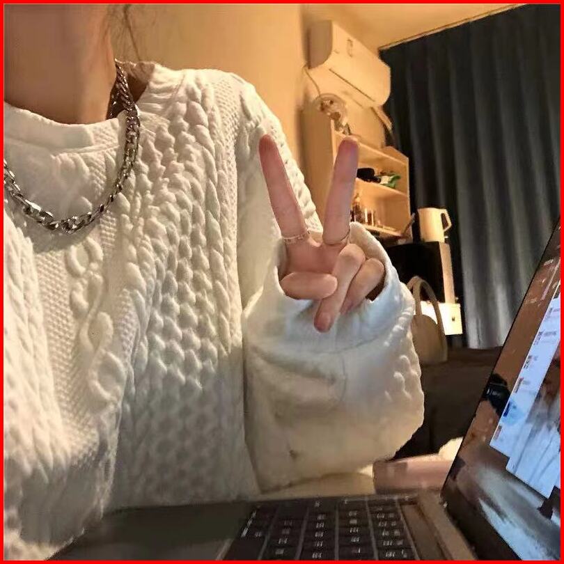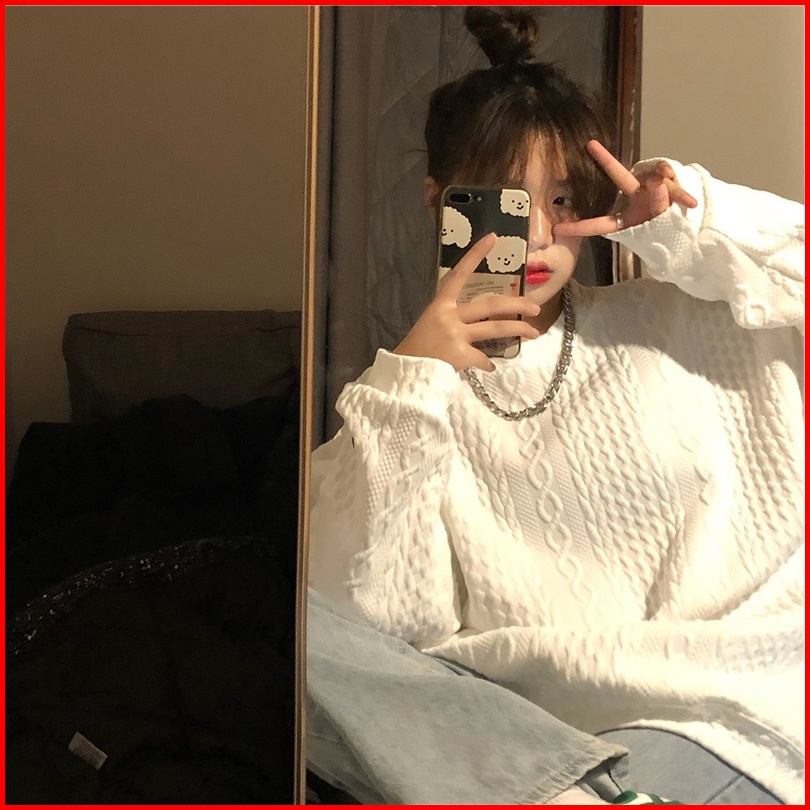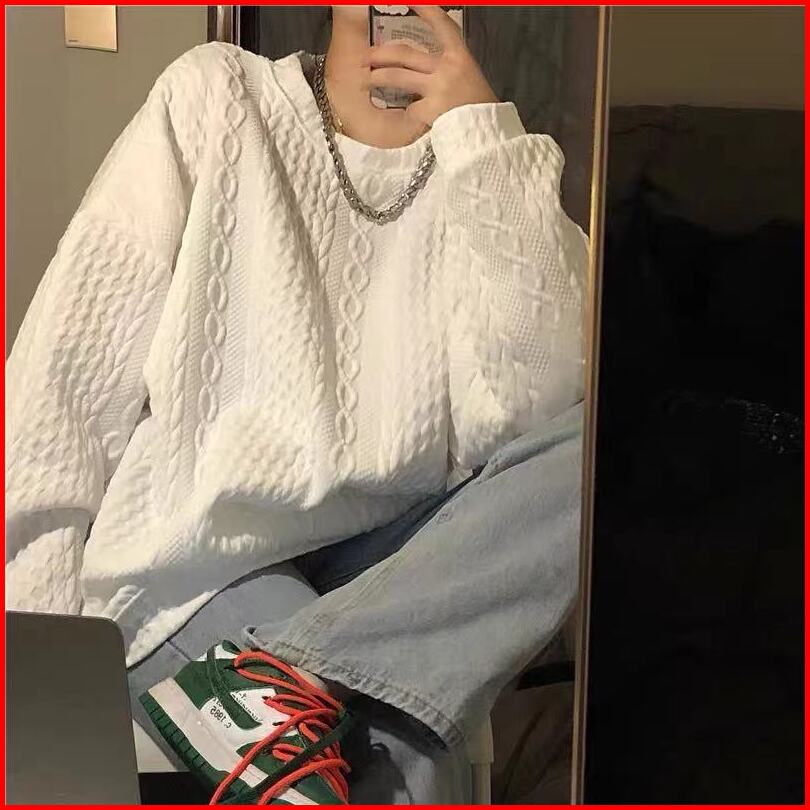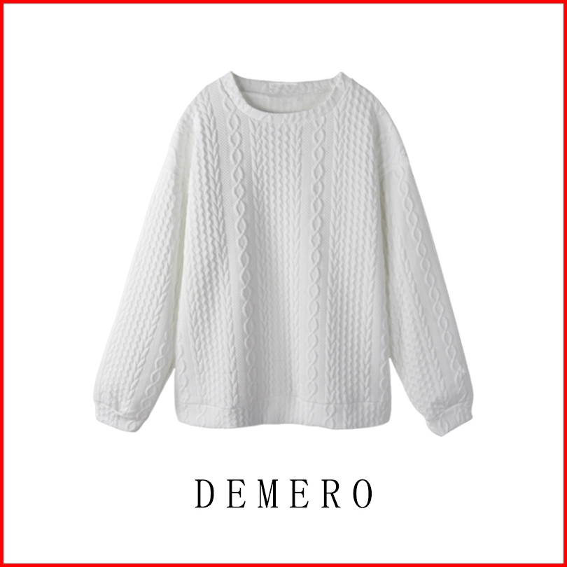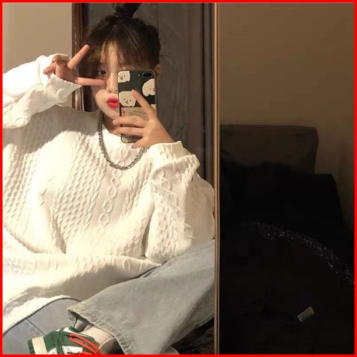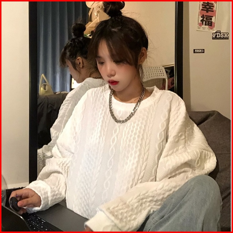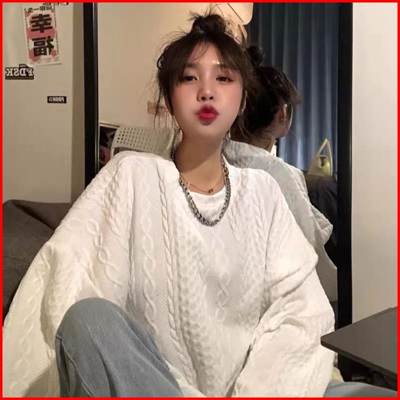 Demero Atasan Knit Switer Oversize Wanita Lengan Panjang Sweter Putih Longgar Korean Style Baju Knit Wanita Stripe Knit