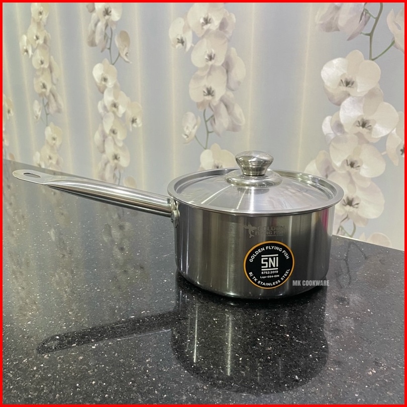 Golden Flying Fish - Sauce Pan 18cm - Panci Stainless Steel - 100 Original Food Grade - Panci Indomie Gagang Tahan Panas