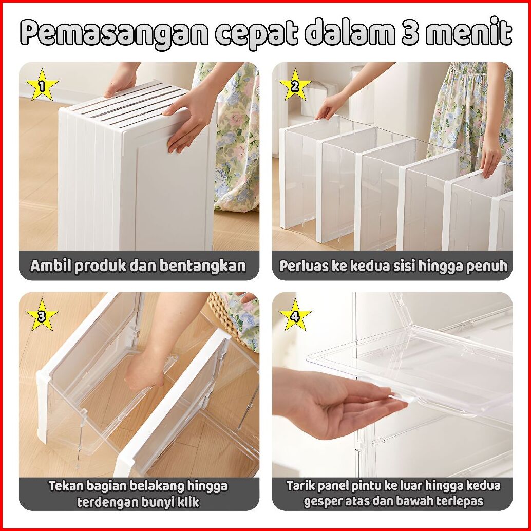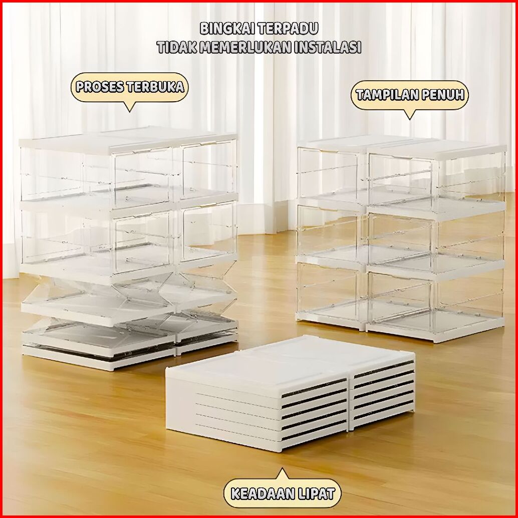 Lostars Tidak Perlu Instalasi 3 6 Susun Kotak Sepatu Lipat Rak Sepatu Lipat Lemari Sepatu Lipat Kotak Sepatu Transparan