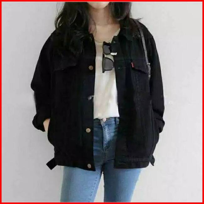 Jaket Jeans Wanita Hitam Cewek Oversize Jumbo Big Size Xxl Xxxl Pekat Full Black Premium