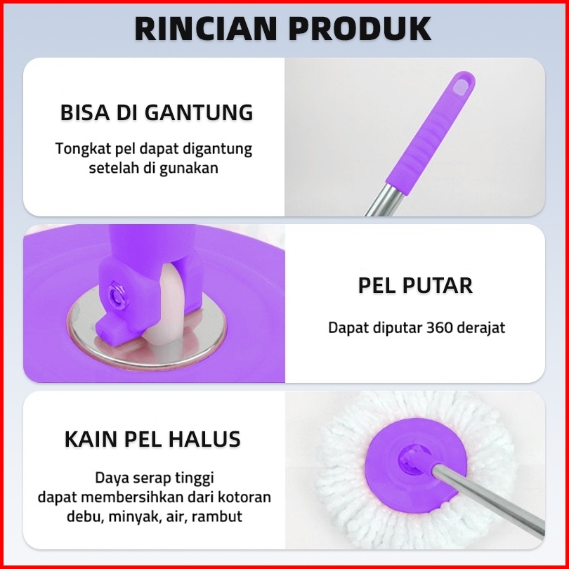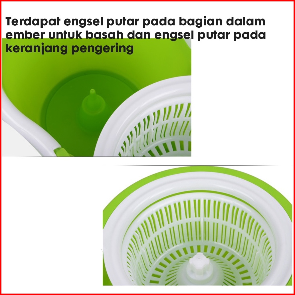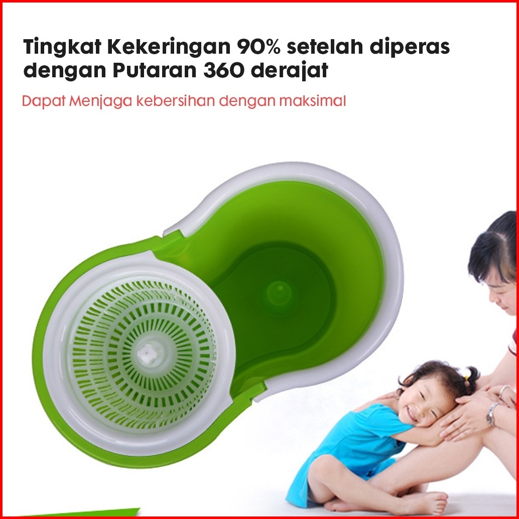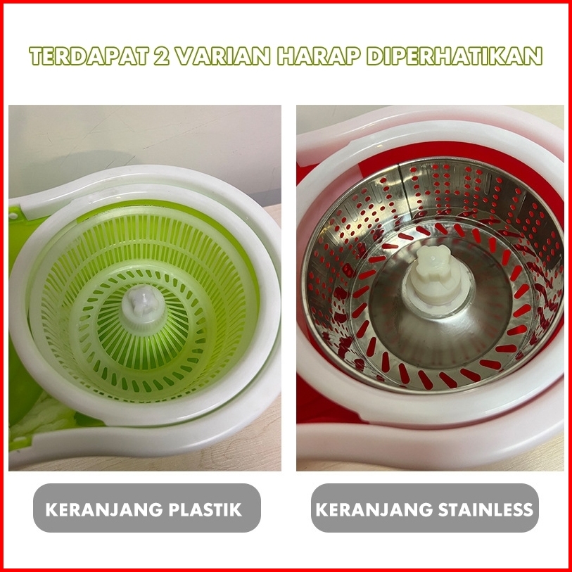 Set Alat Pel Lantai Stainless Super Mop Dengan Ember Pencuci Putar Hand Pressure Rotary Mop 360