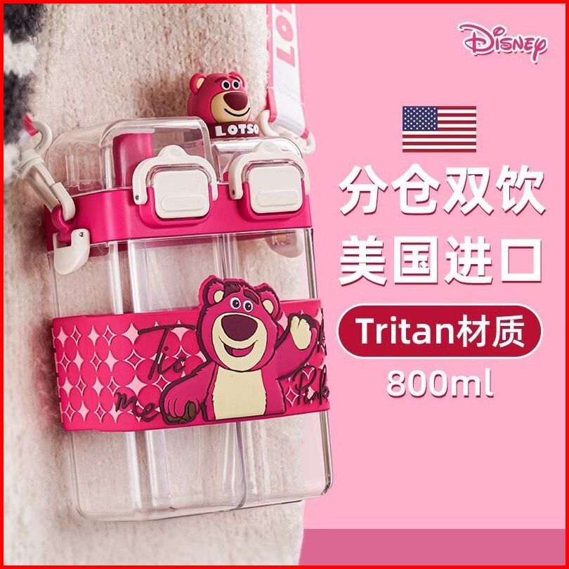 Best Seller Botol Minum Dual Wadah 2 Sisi Tempat Tritan Bpa Free Mickey Snoopy Lotso 800ml