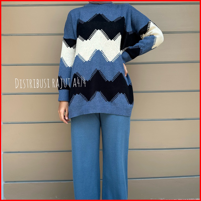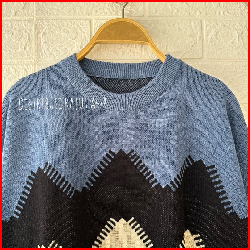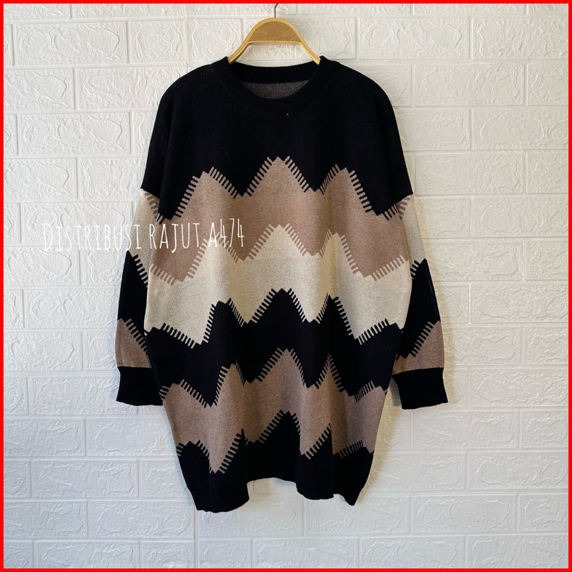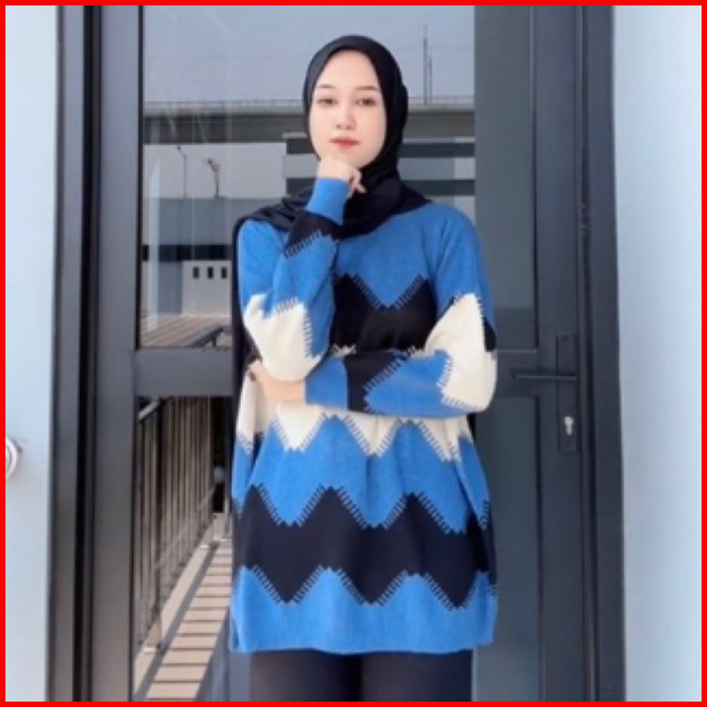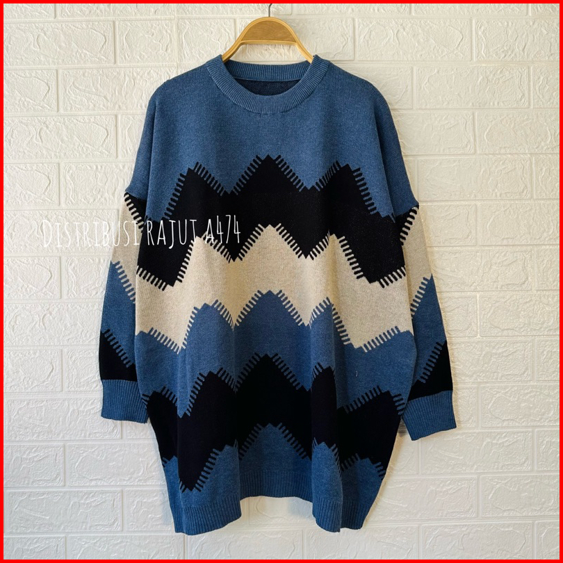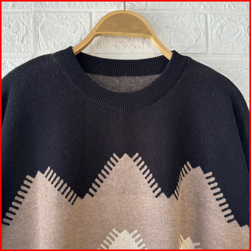 Larossa Catoon Atasan Sweater Rajut Oversize Mofit Zigzag Wanita Terbaru