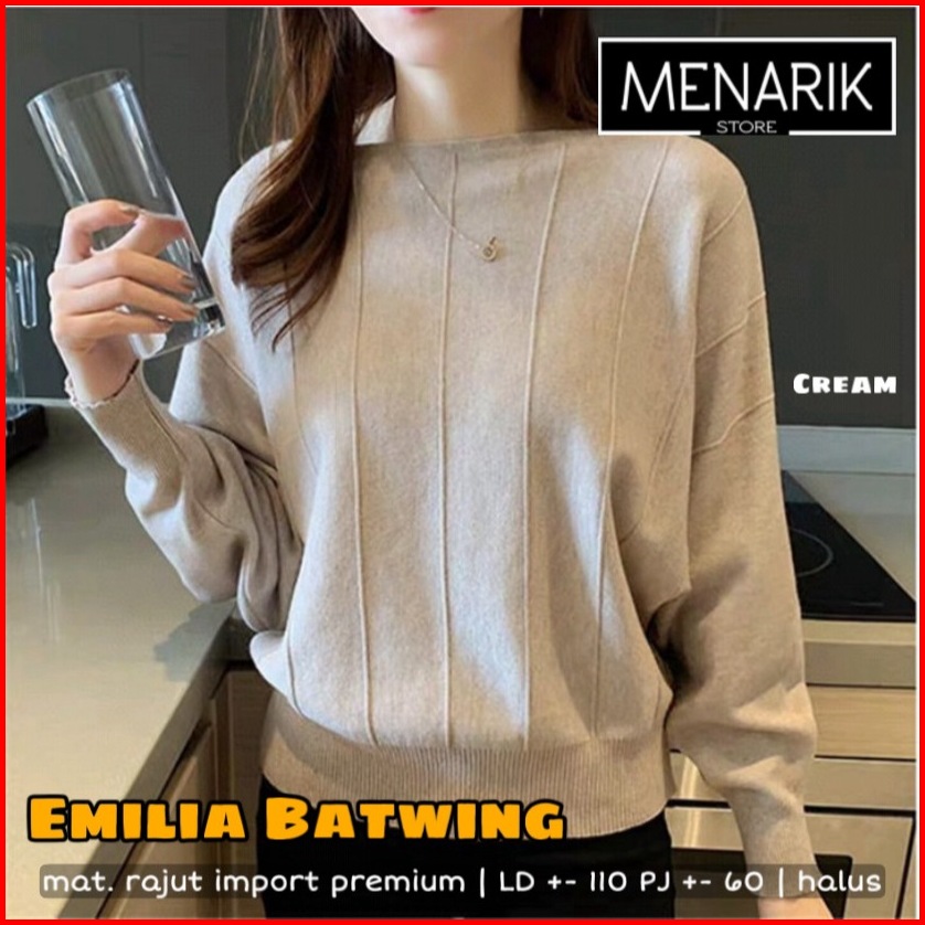 Emilia Batwing Sweater Rajut Halus Ld 110 Pj 60 Nyaman Dipakai