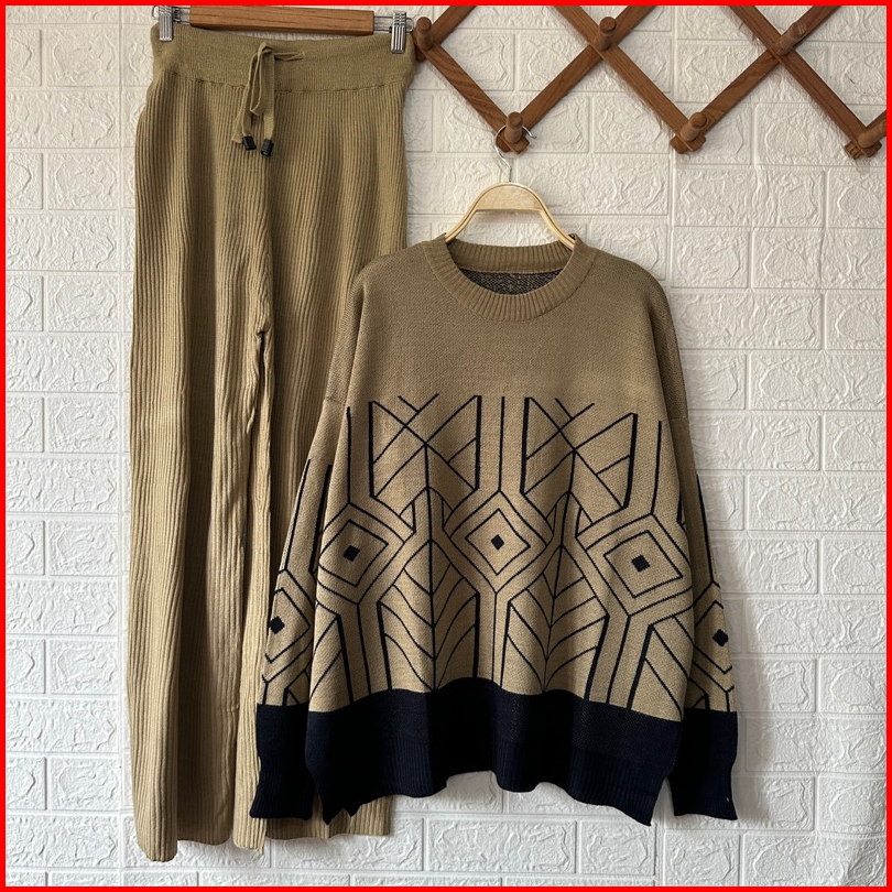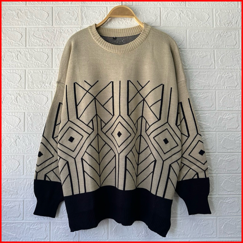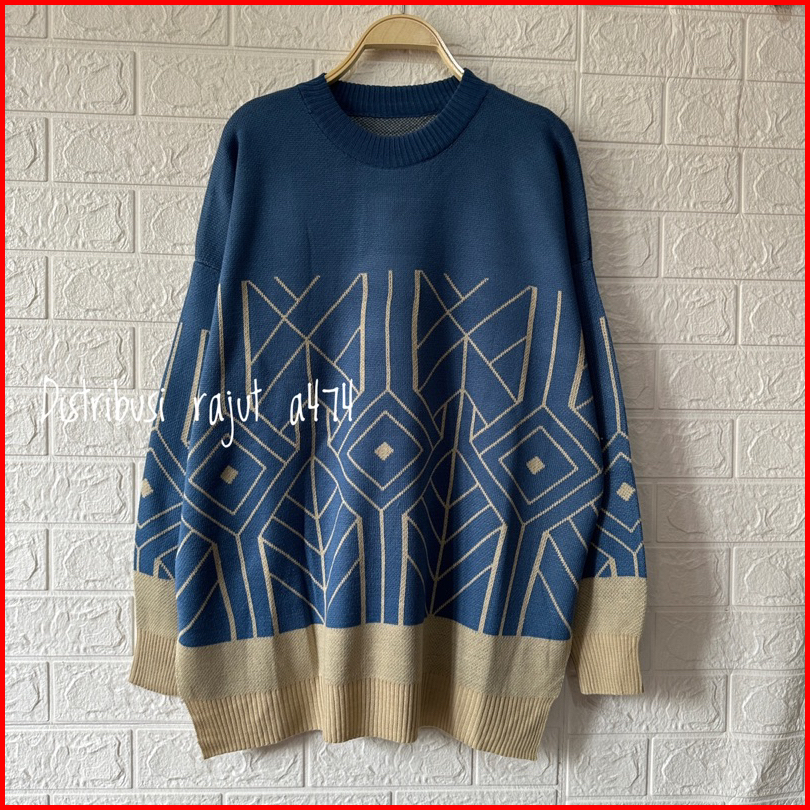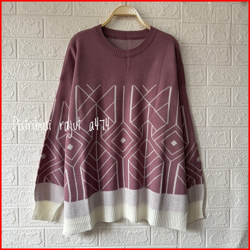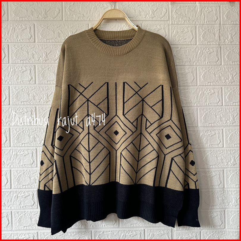 Zig Zag Sweater Rajut Oversize Motif Atasan Rajut Wanita Korea