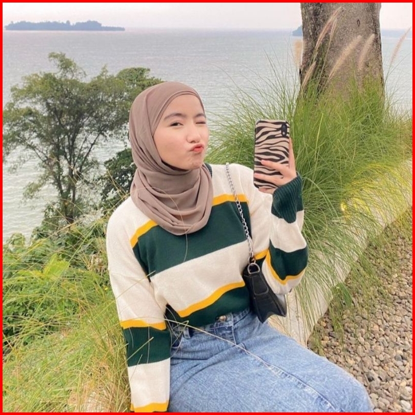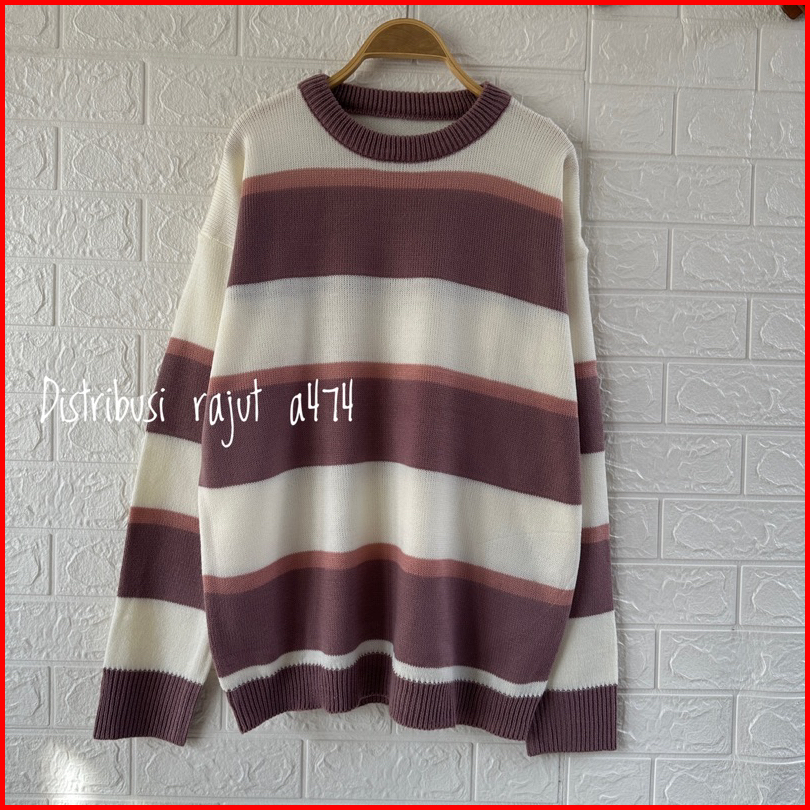 Milea Sweater Rajut Korea Oversize Motif Strippe Blaster