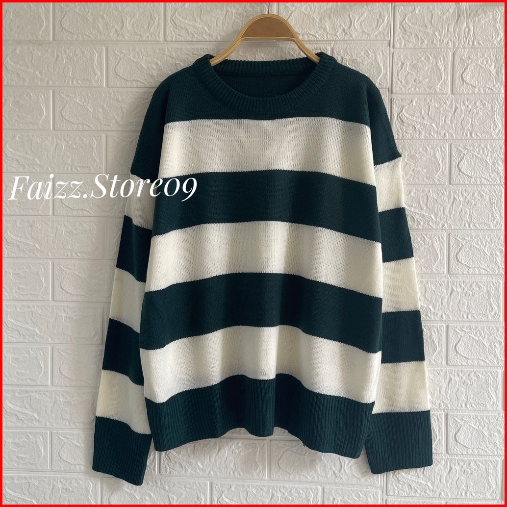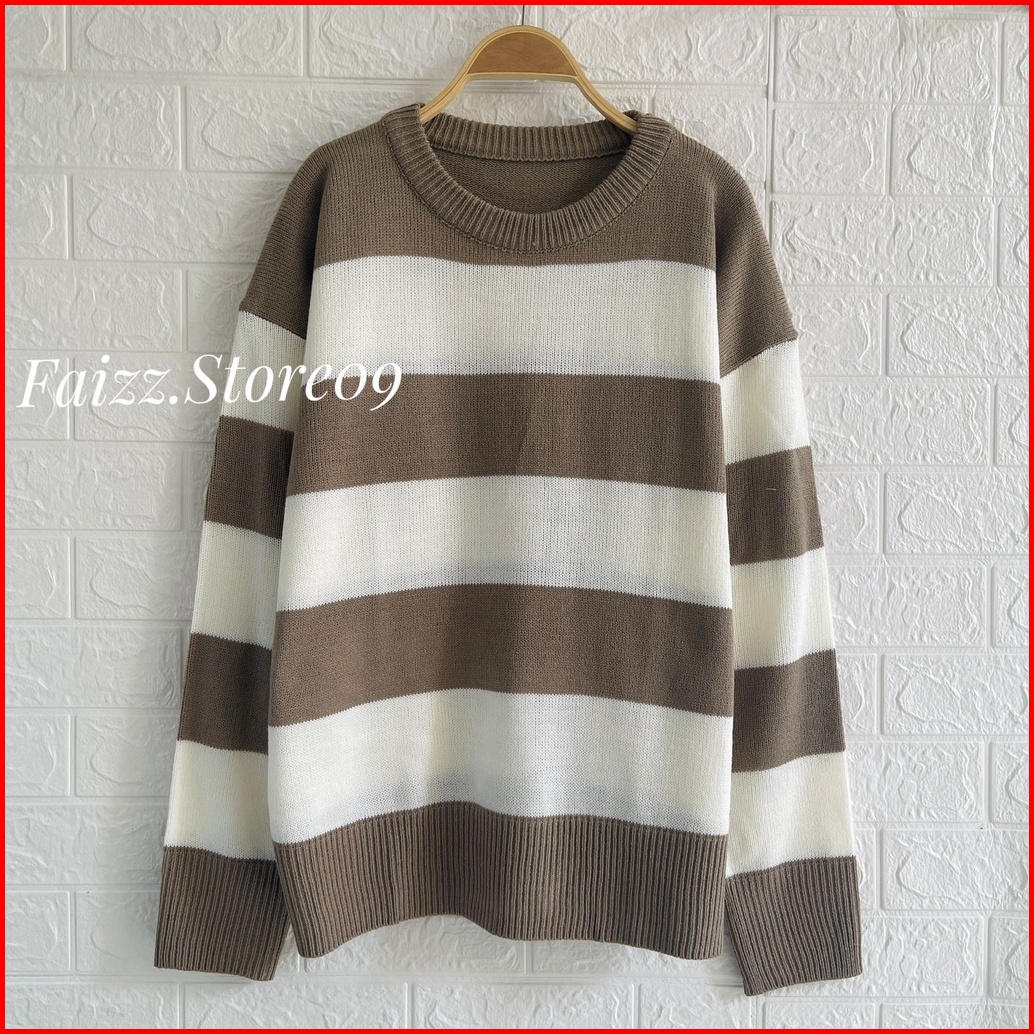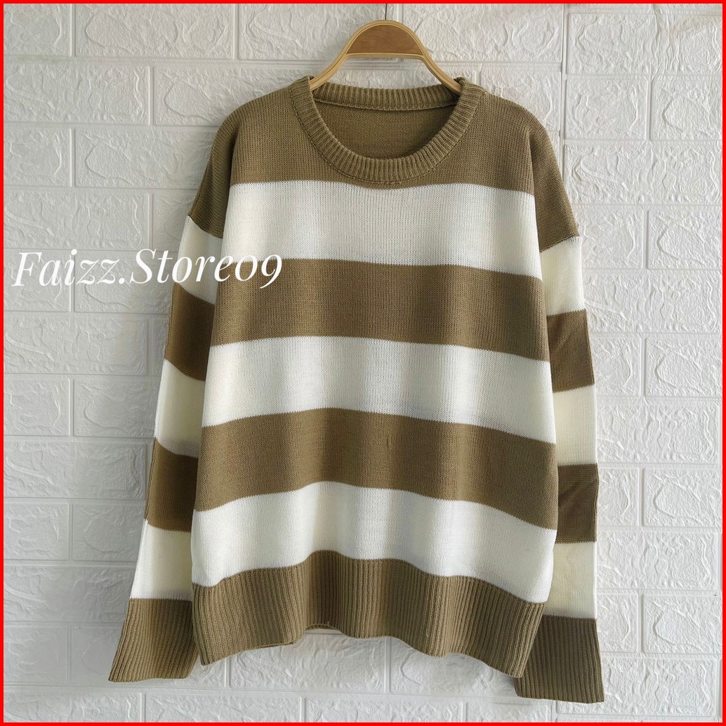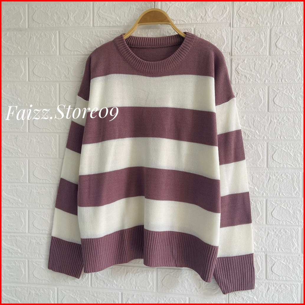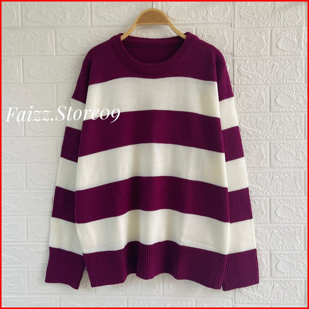 Sweater Rajut Oversize Hanabi Motif Blaster Atasan Lengan Panjang Knitted Oversize Wanita