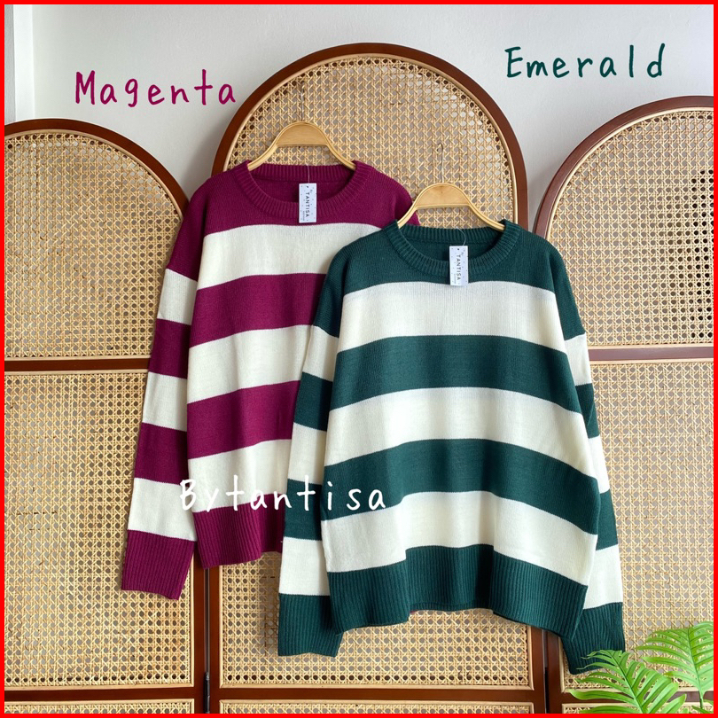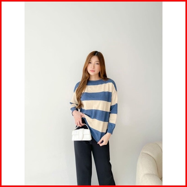 Eira Sweater Rajut Strip Oversize Atasan Wanita Kniited