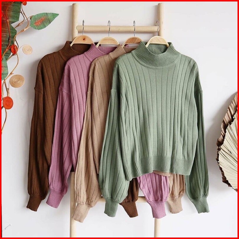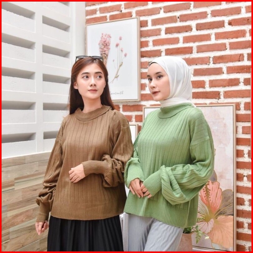 Discon Jovanca Rajut Oversize Turtleneck Knitwear Arsyilla Puffy Rajut Atsan Wanita Jlurbsa