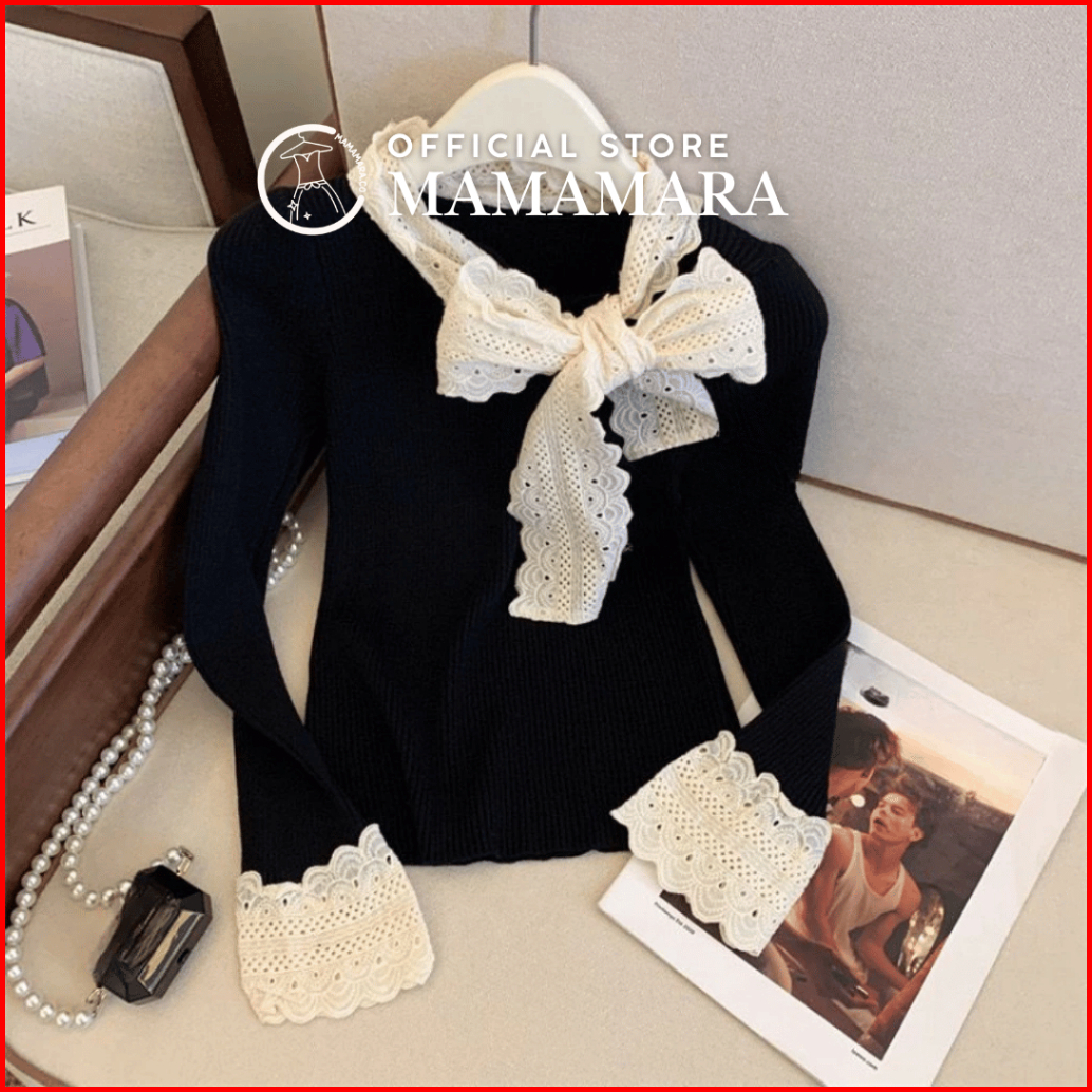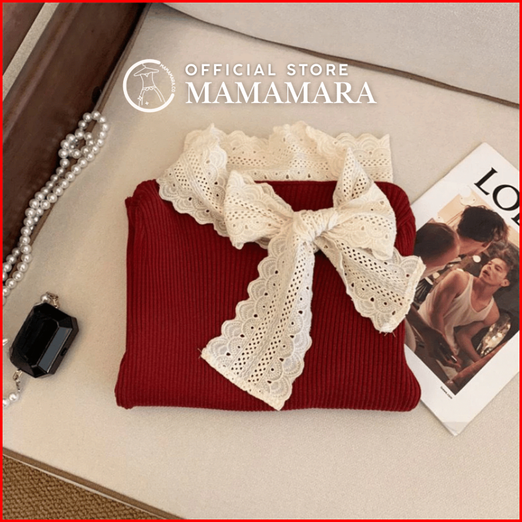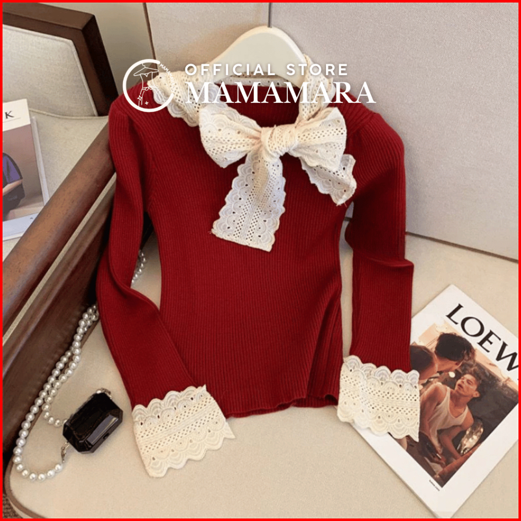 Mamamara - Atasan Rajut Premium Knit Wanita Top Ribbon Knit Shoulder Long Sleeve Knitwear Tali Pita