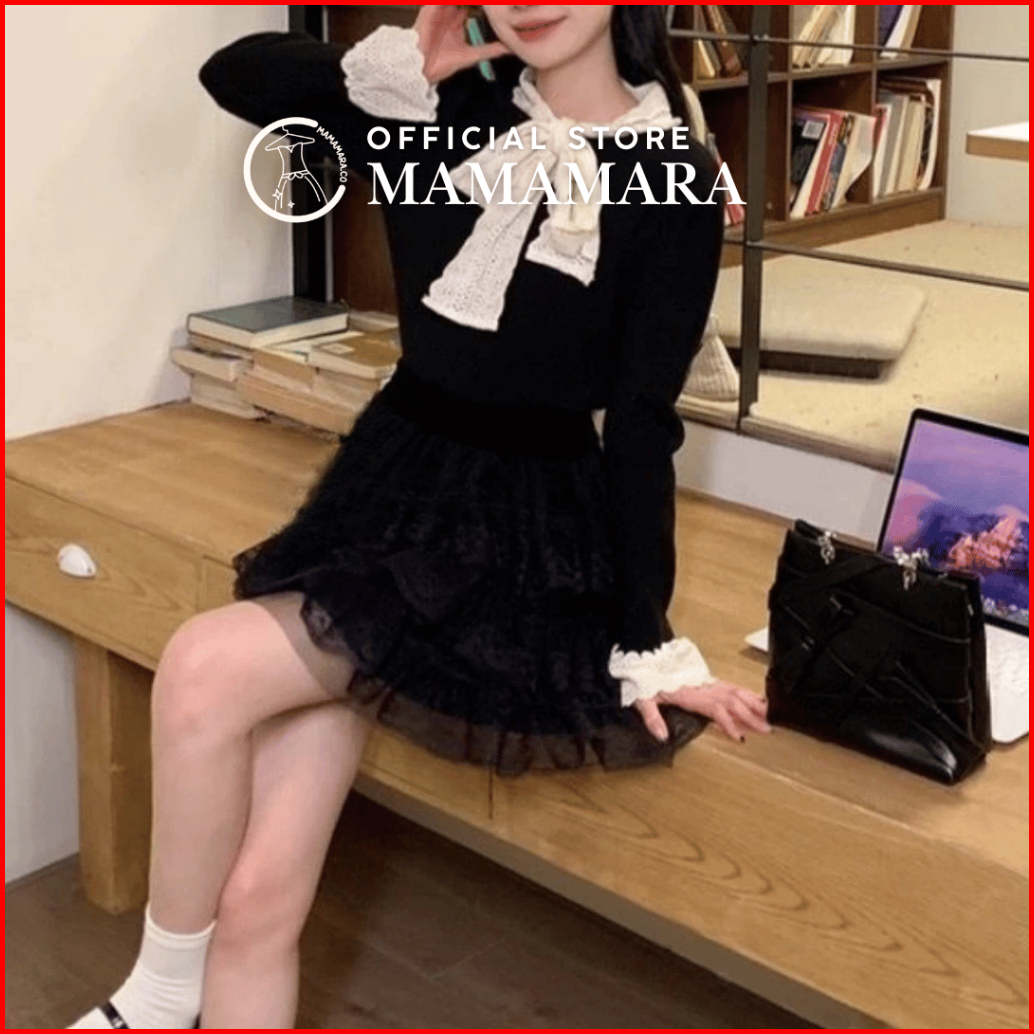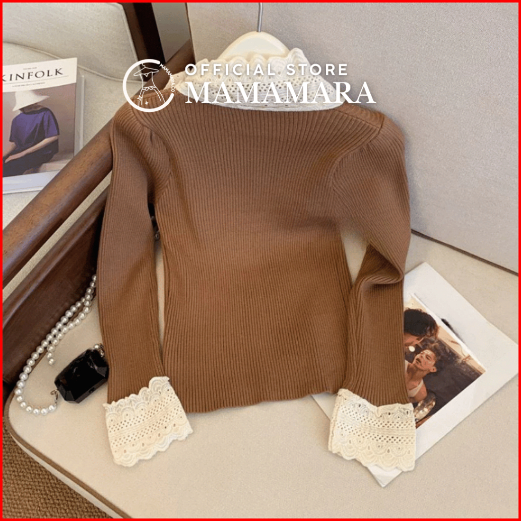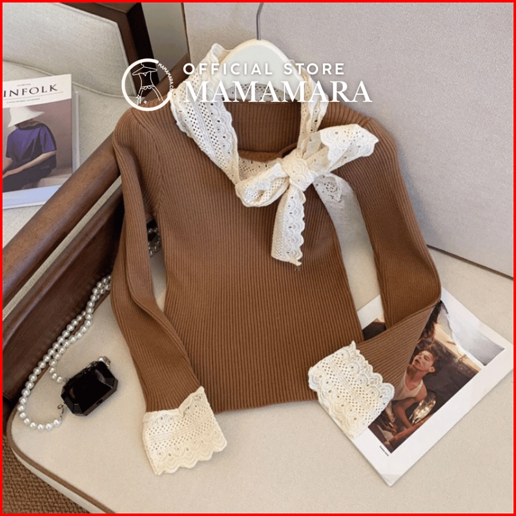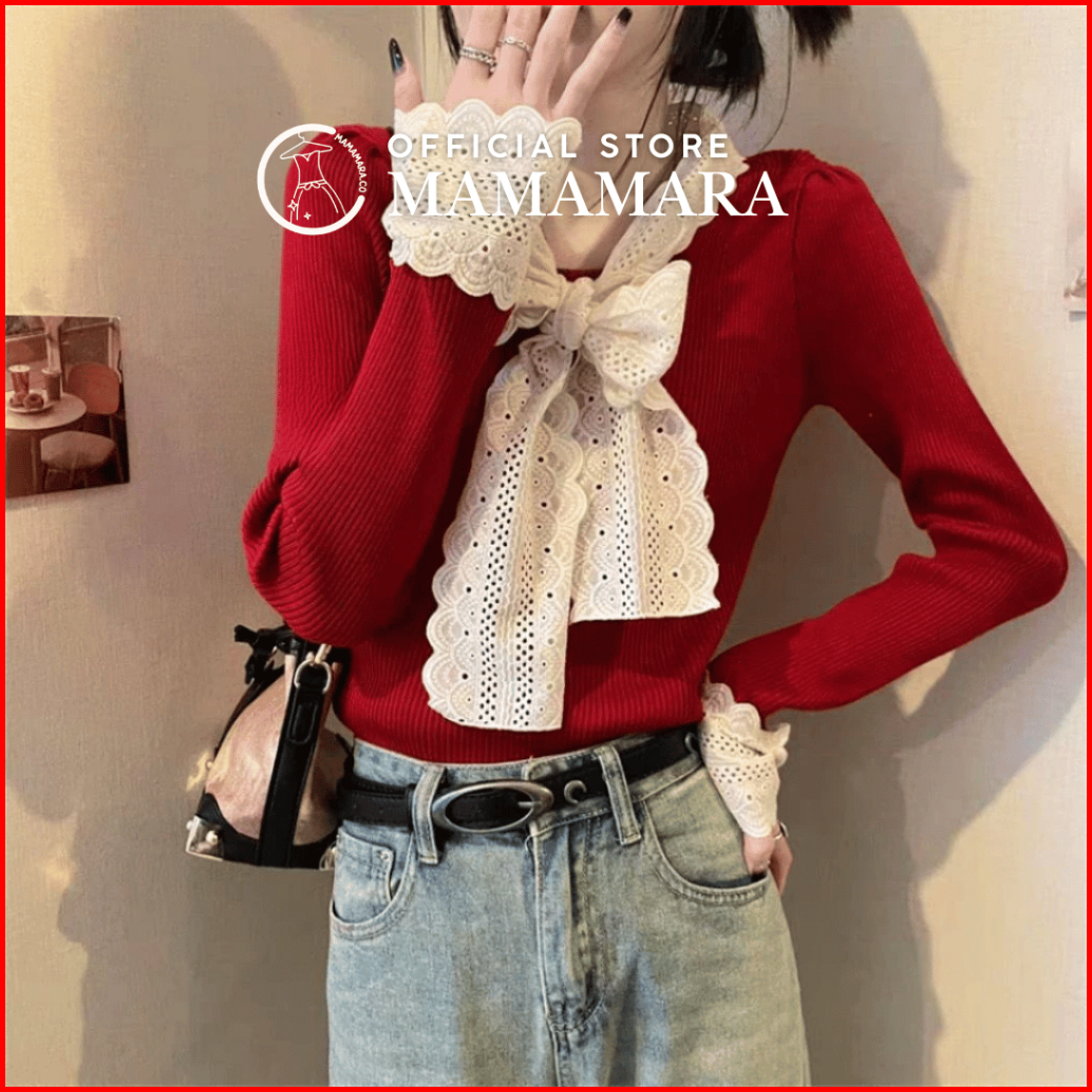 Mamamara - Atasan Rajut Premium Knit Wanita Top Ribbon Knit Shoulder Long Sleeve Knitwear Tali Pita