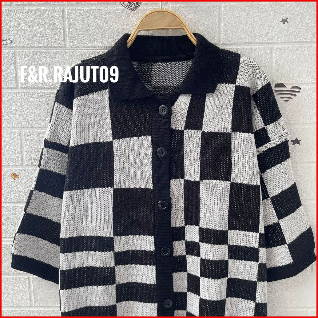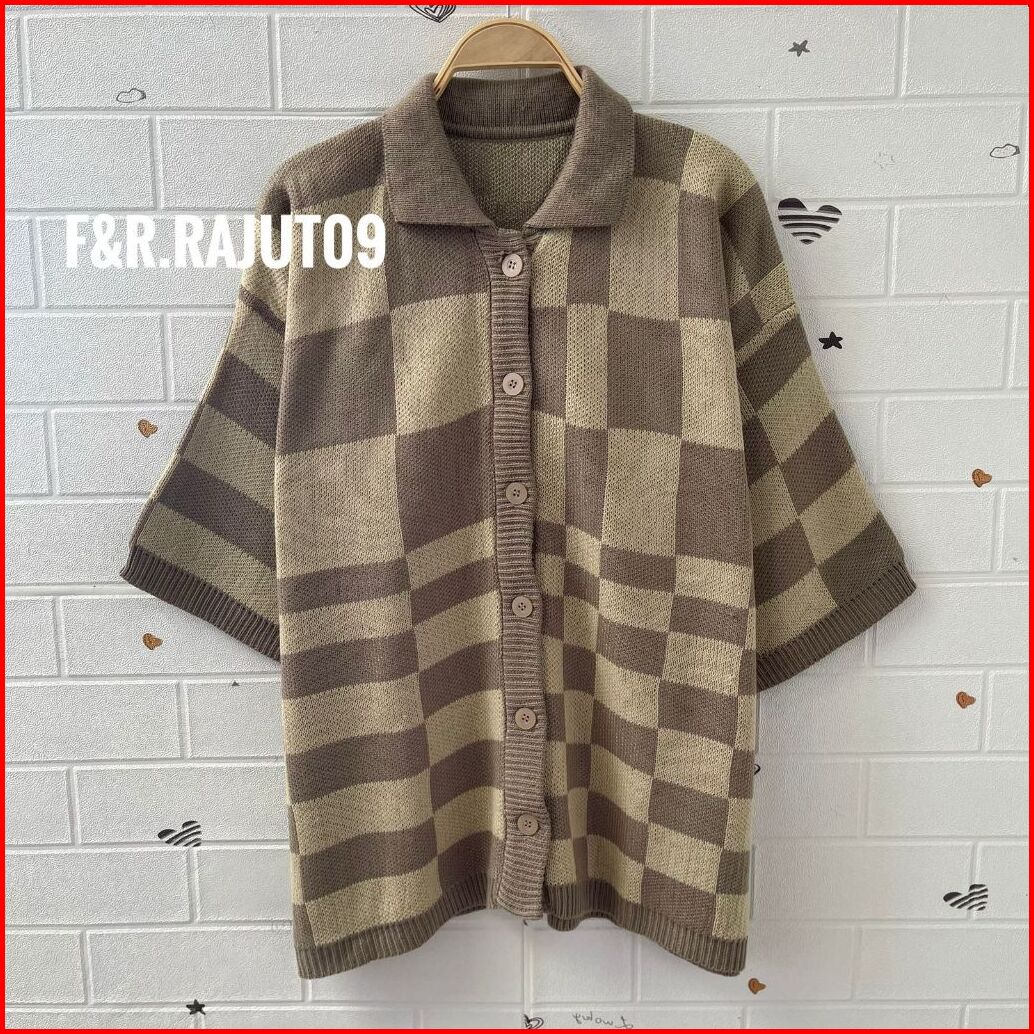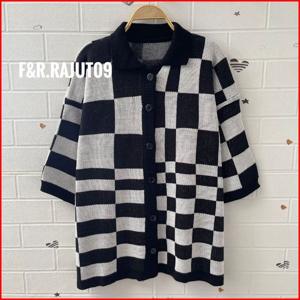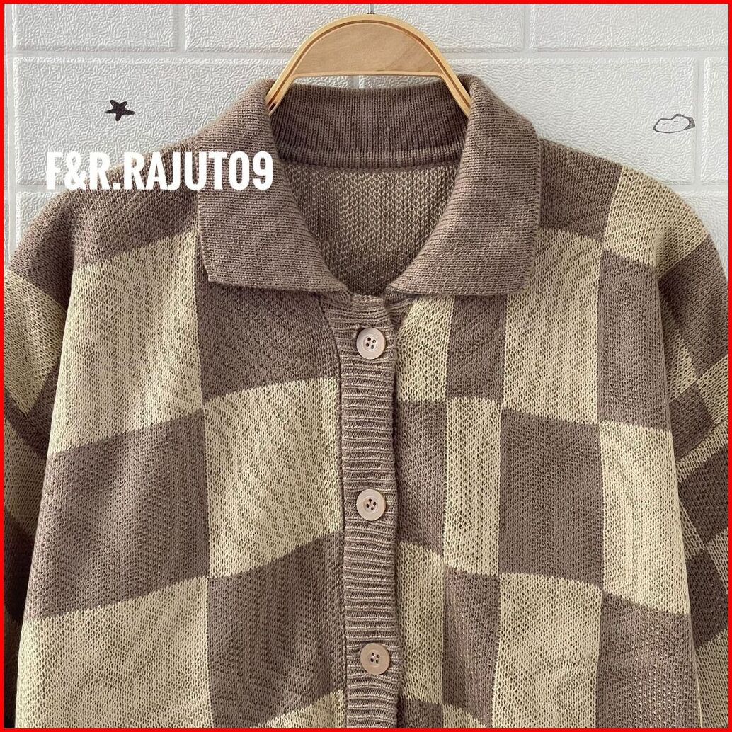 Knitwear Outfit Fuji Cardigan Rajut Motif Kotak Oversize