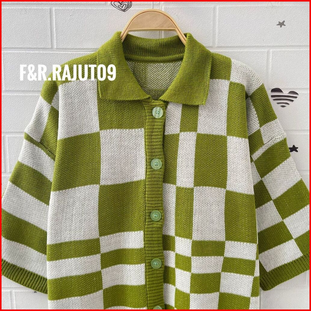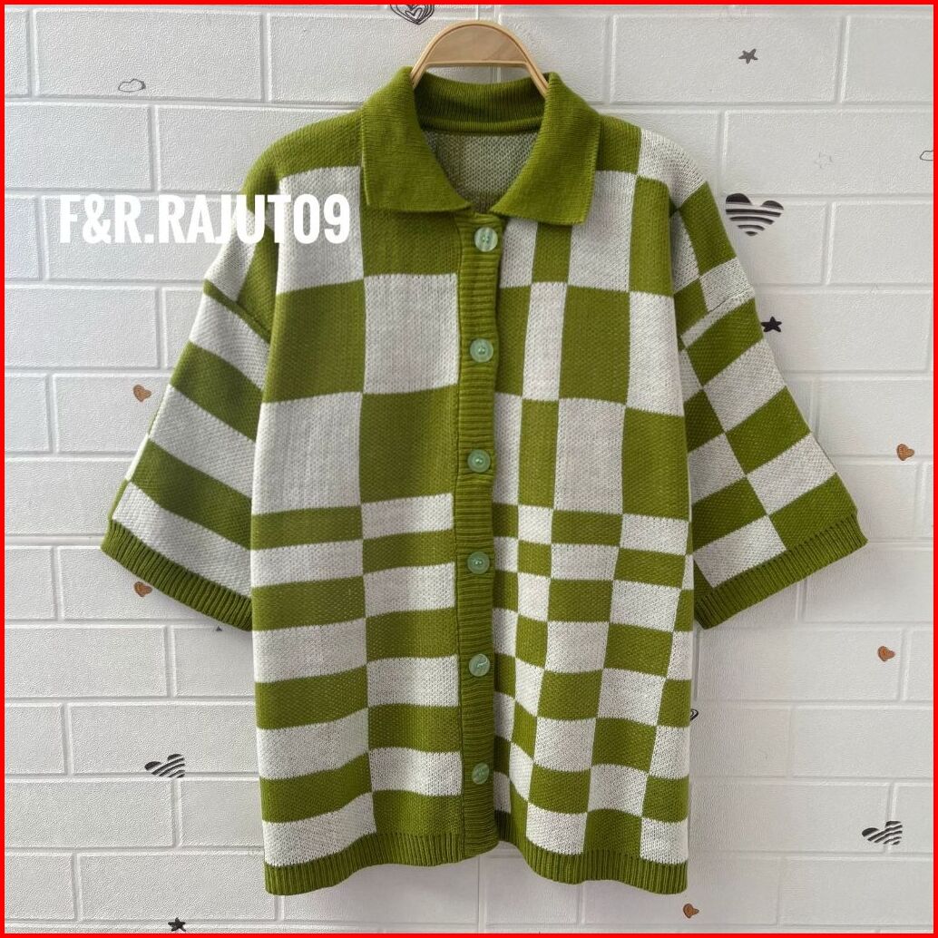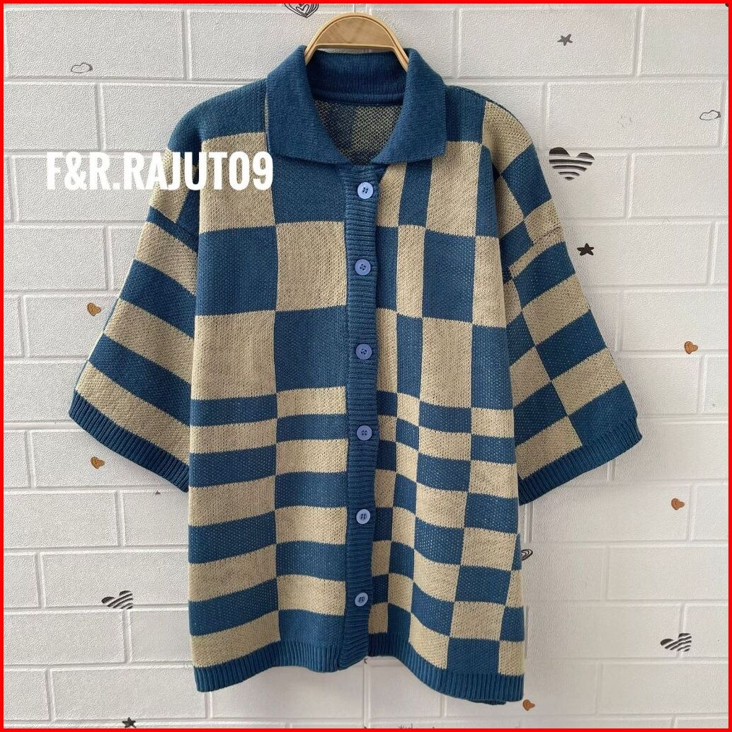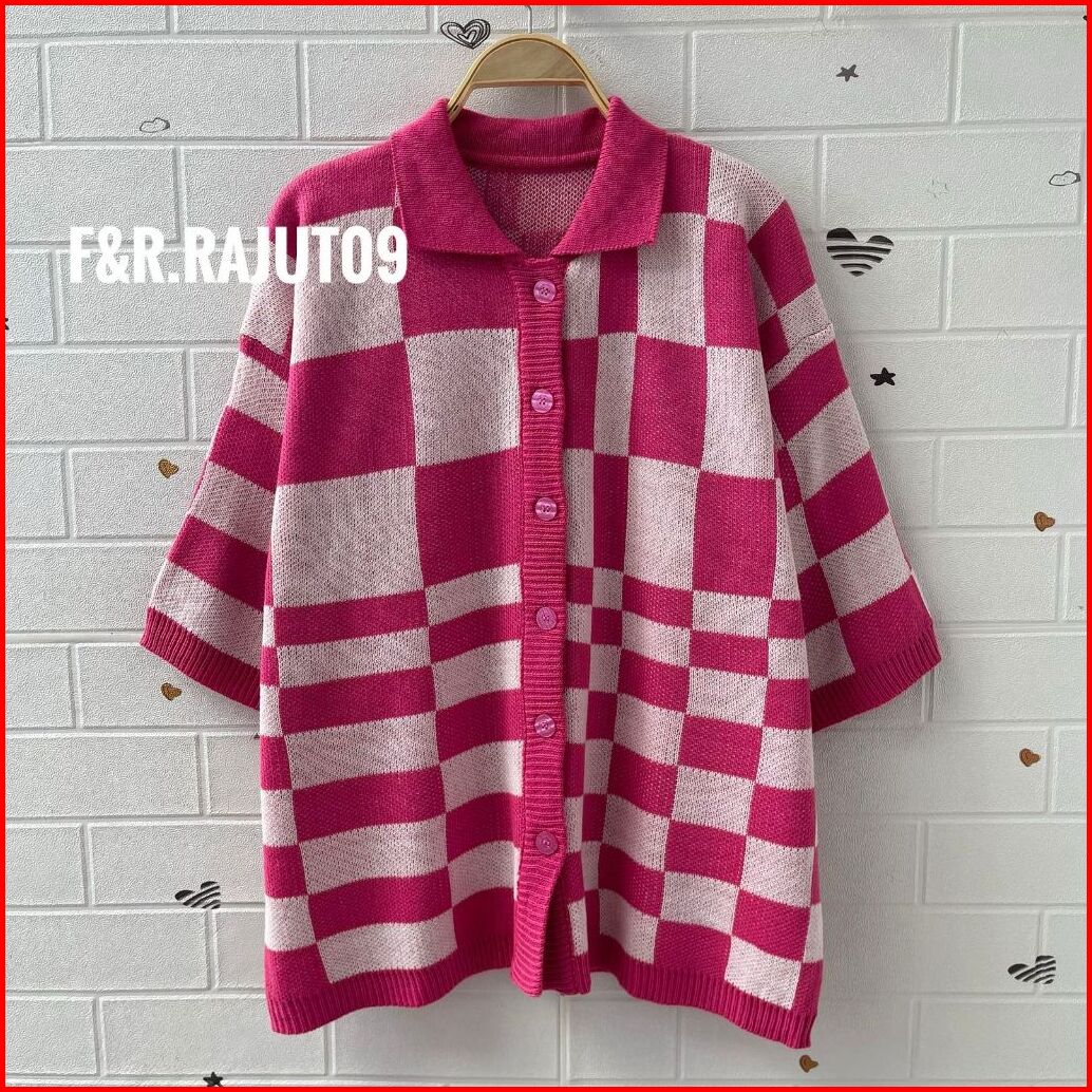 Knitwear Outfit Fuji Cardigan Rajut Motif Kotak Oversize