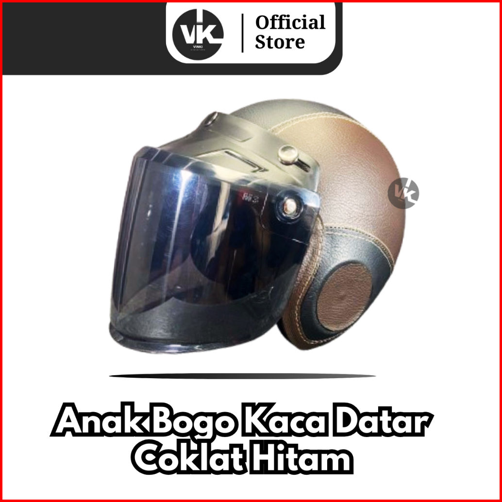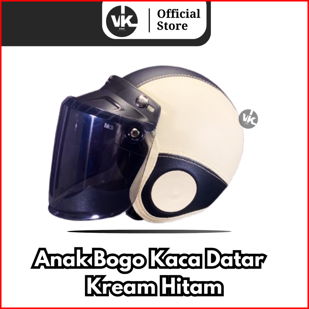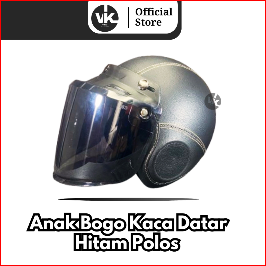 Vinki Helm Anak Retro Bogo Premium 2 3 4 5 6 Tahun Polos Full Kulit Free Visor Kaca Flat Datar