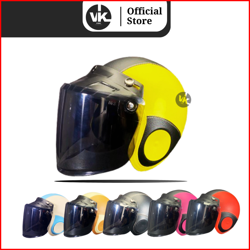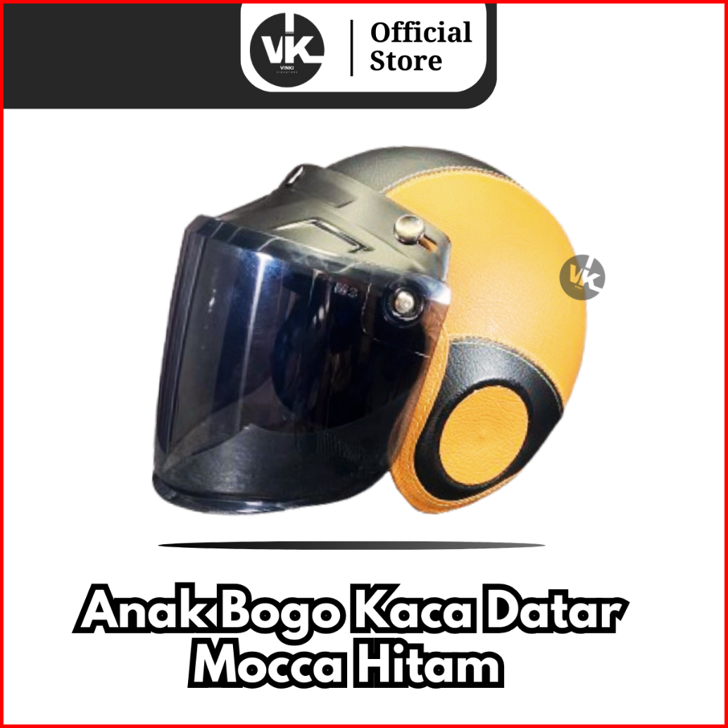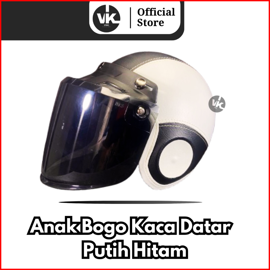 Vinki Helm Anak Retro Bogo Premium 2 3 4 5 6 Tahun Polos Full Kulit Free Visor Kaca Flat Datar
