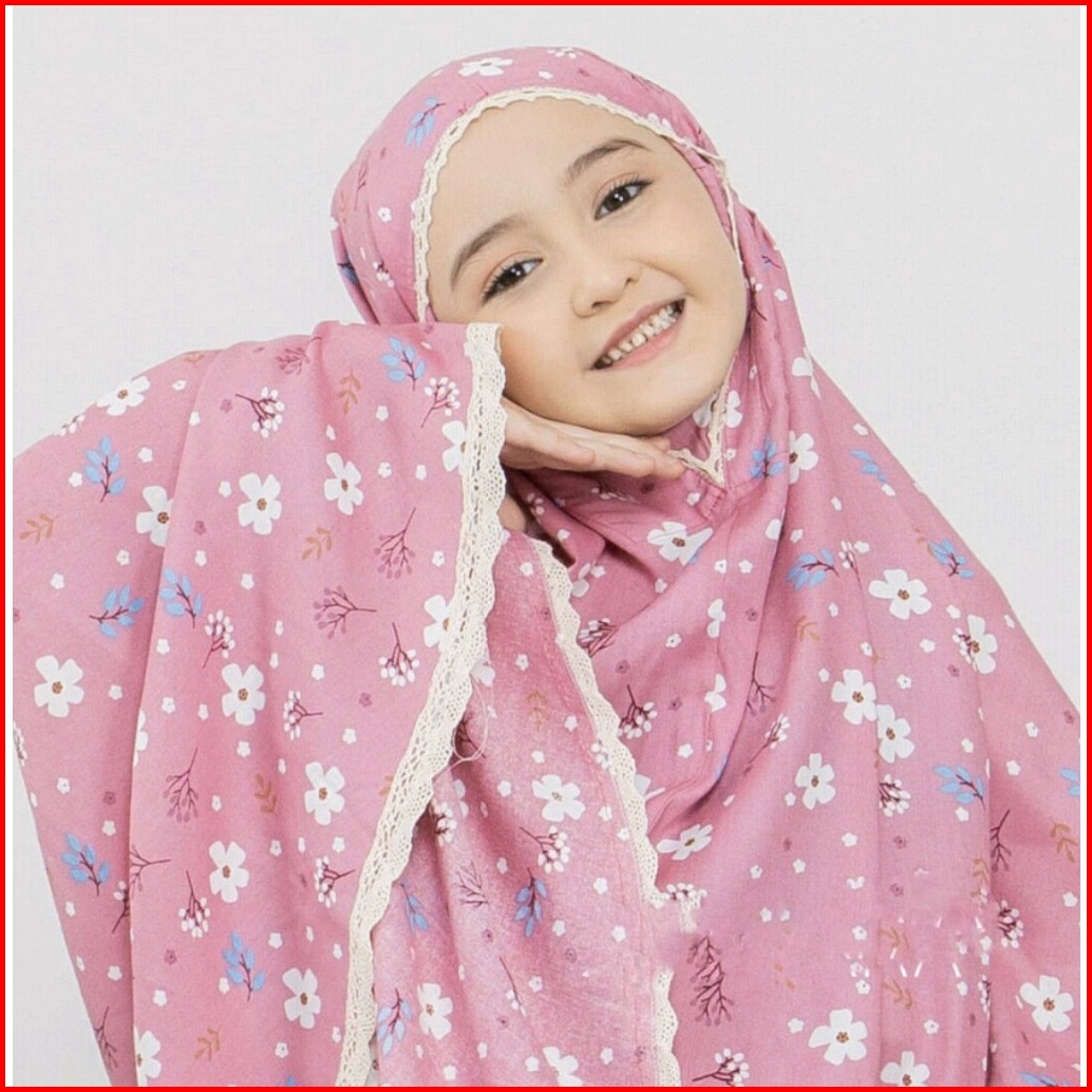 Mukenajkt Mukena Anak Tanggung Flowly Series Rayon Bali Kombinasi Renda Tas Sleting