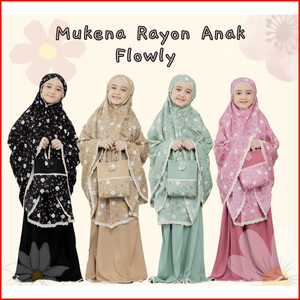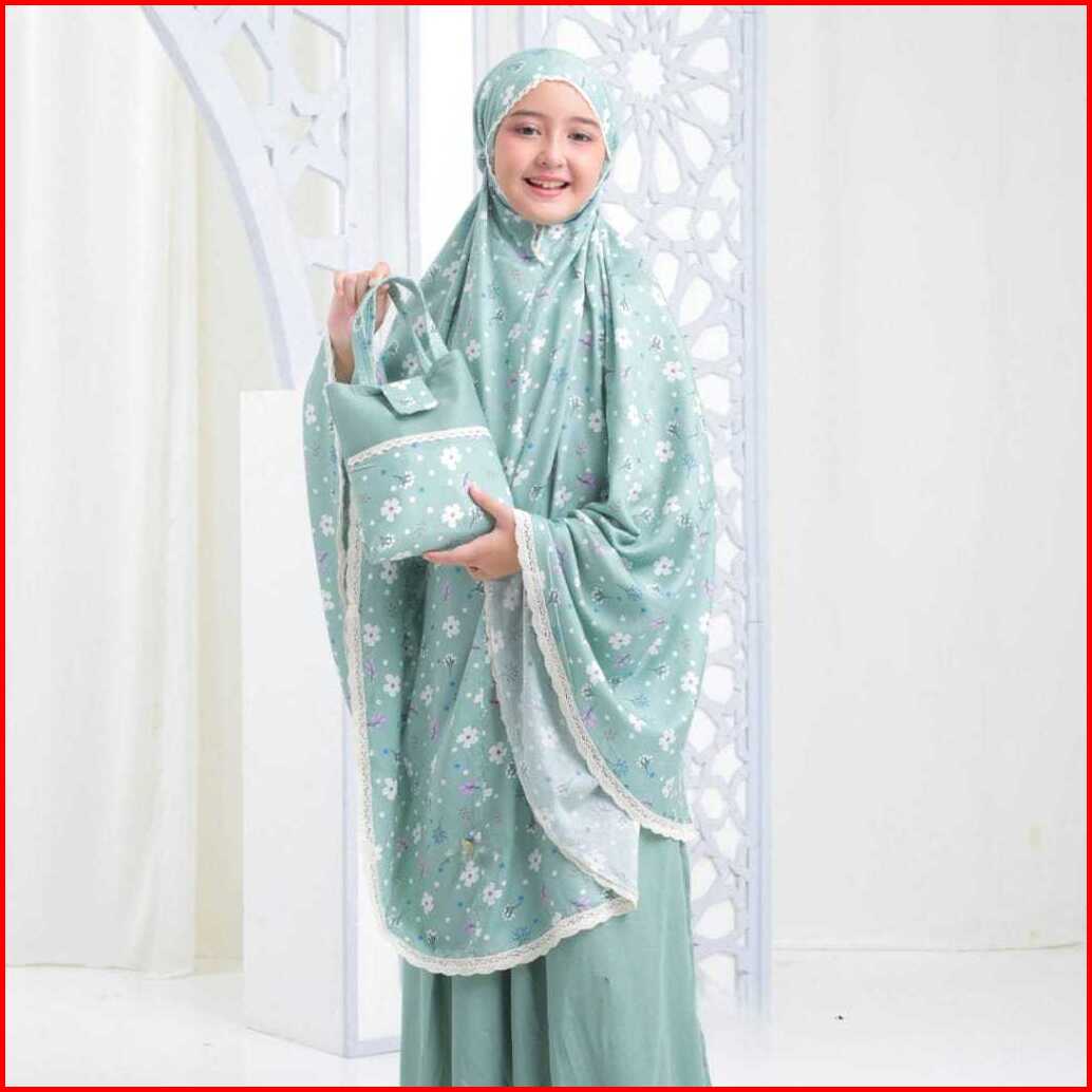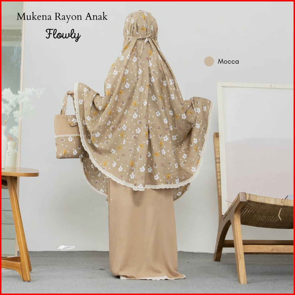 Mukena Anak Tanggung Flowly Series Rayon Bali Kombinasi Renda Tas