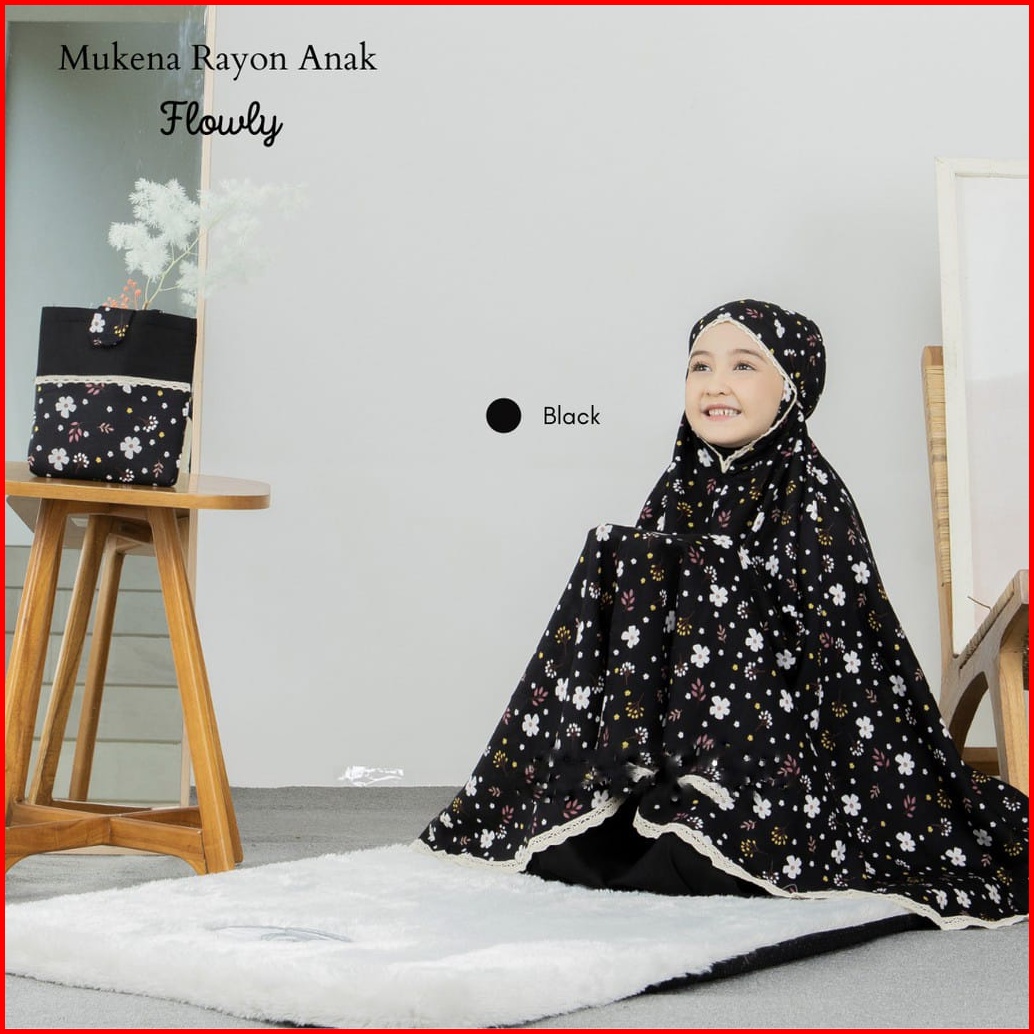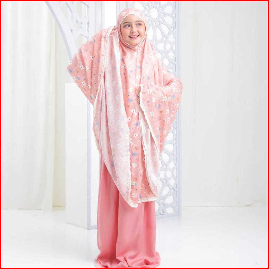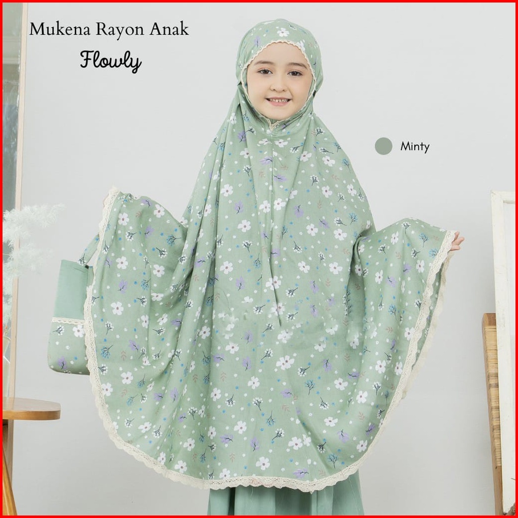 Mukena Anak Tanggung Flowly Series Rayon Bali Kombinasi Renda Tas