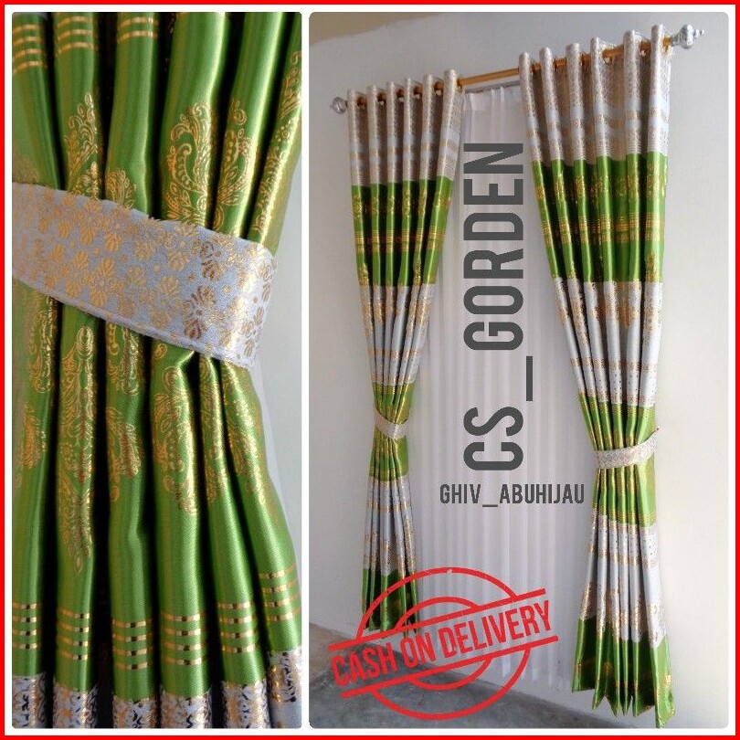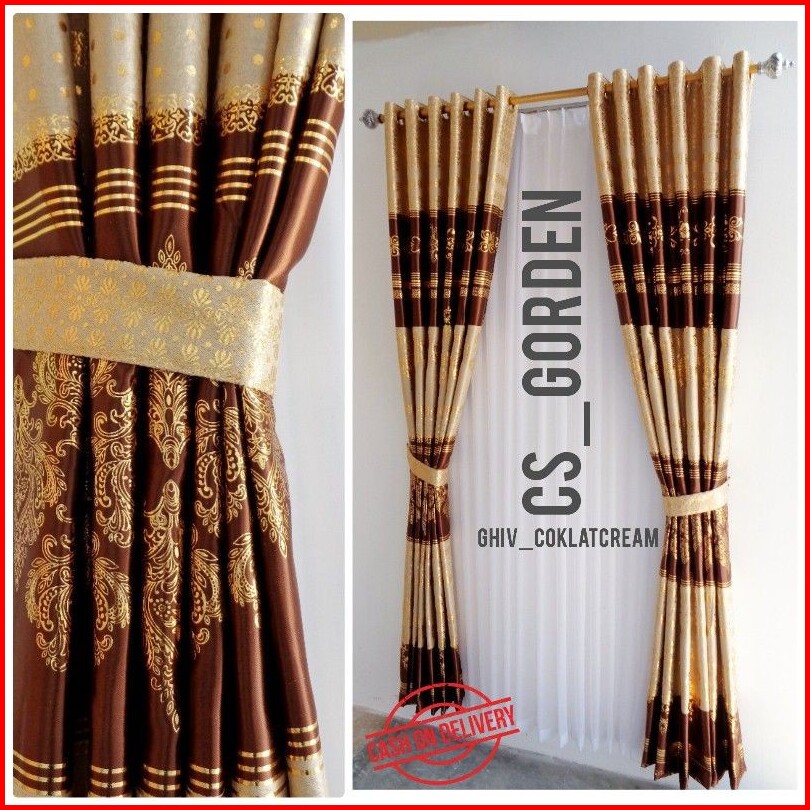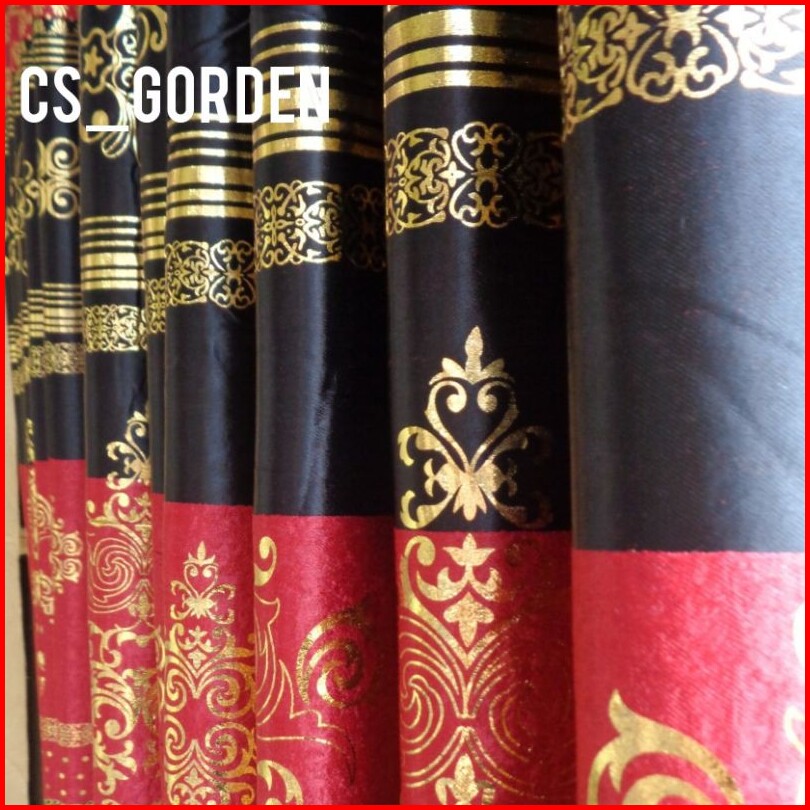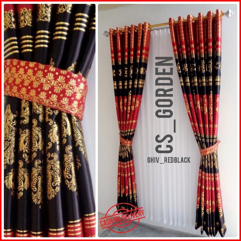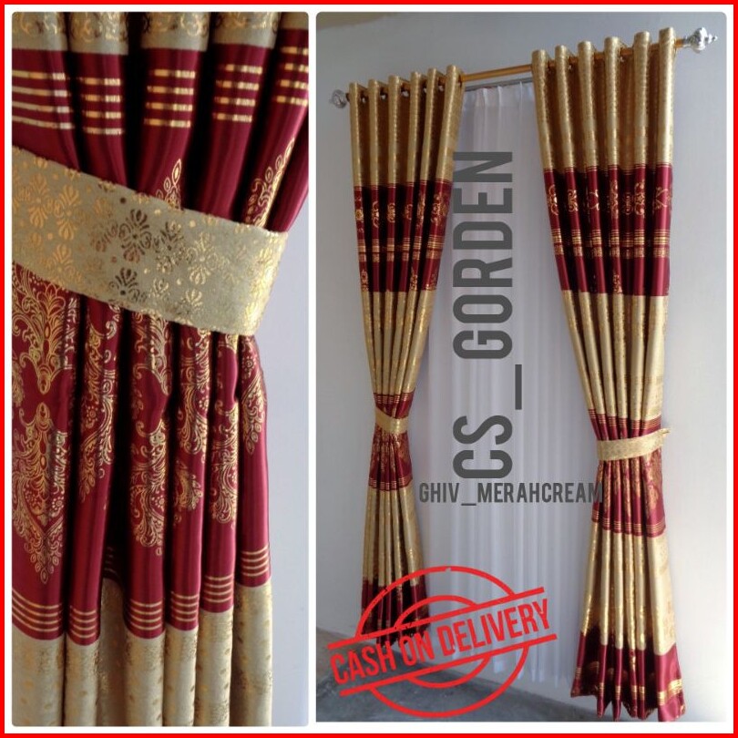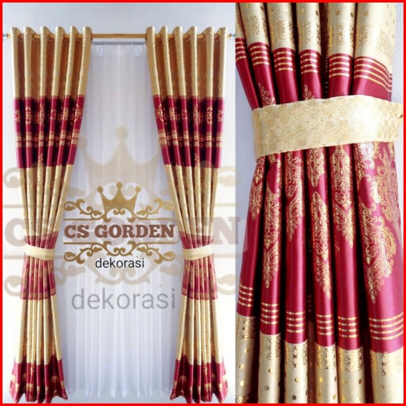 Gorden Pintu Dan Jendela Minimalis Merah Crem Print 5 Gelembung Model Semokring Tinggi 225 Cm