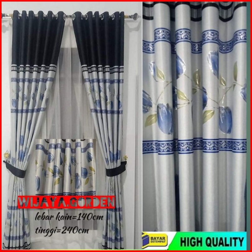 Gorden 1 Set Jendela Dan Pintu Blackout Import Motif Bunga Tulip Hordeng Poni Napolion Tebal Mewah 12riing Semokring Leb